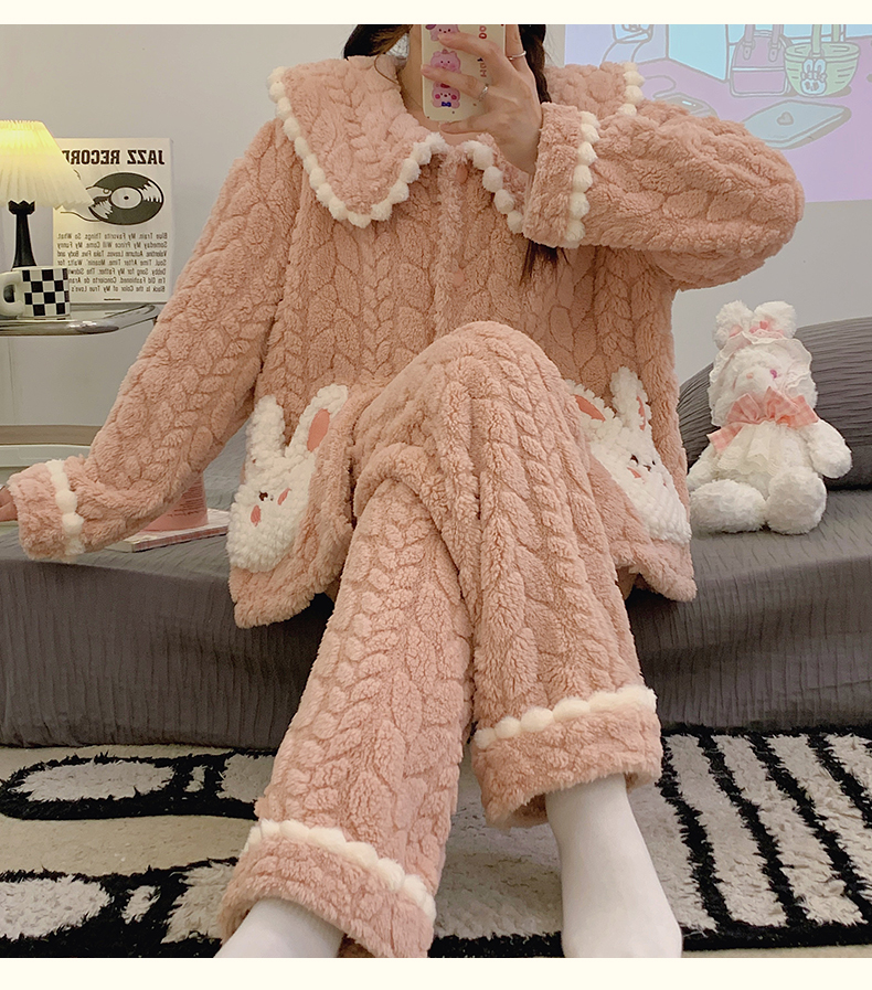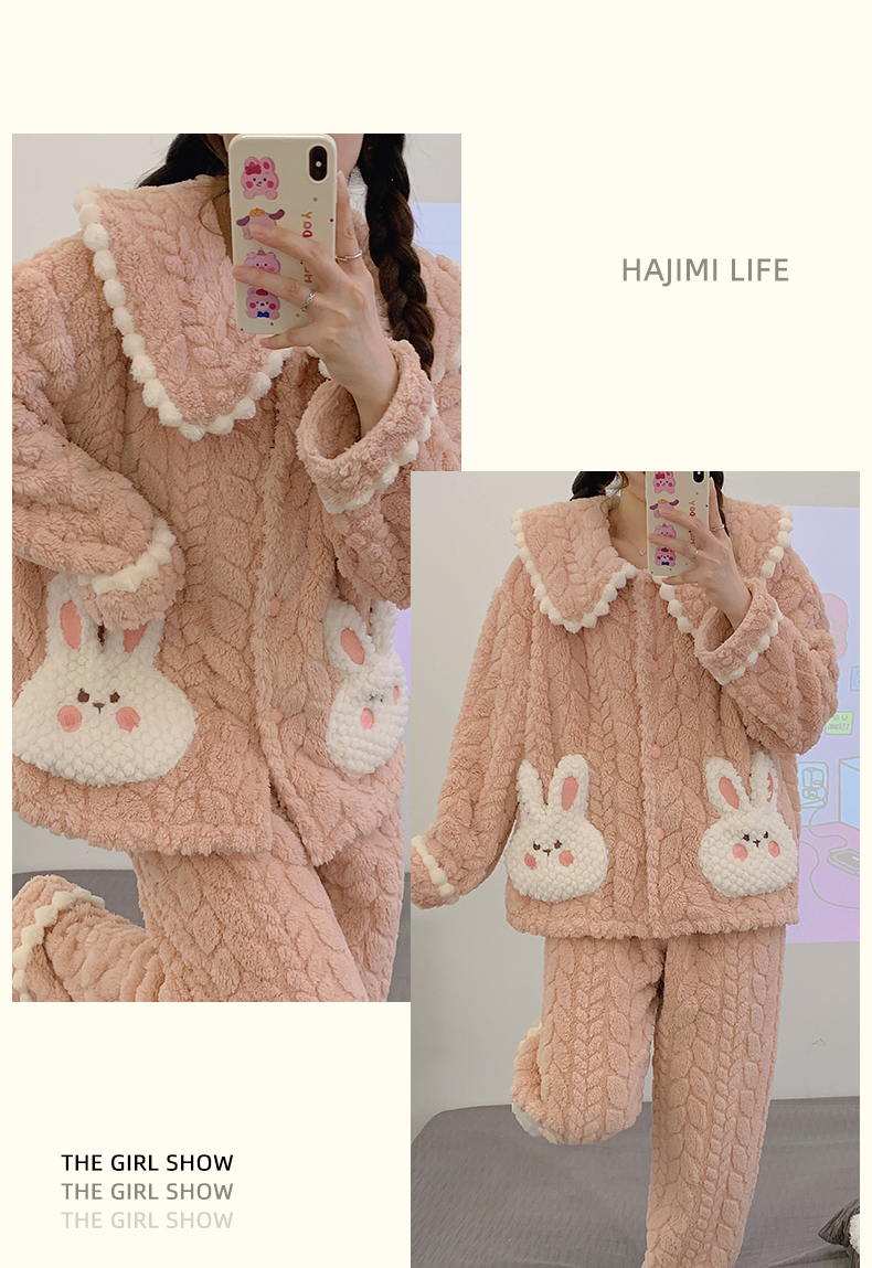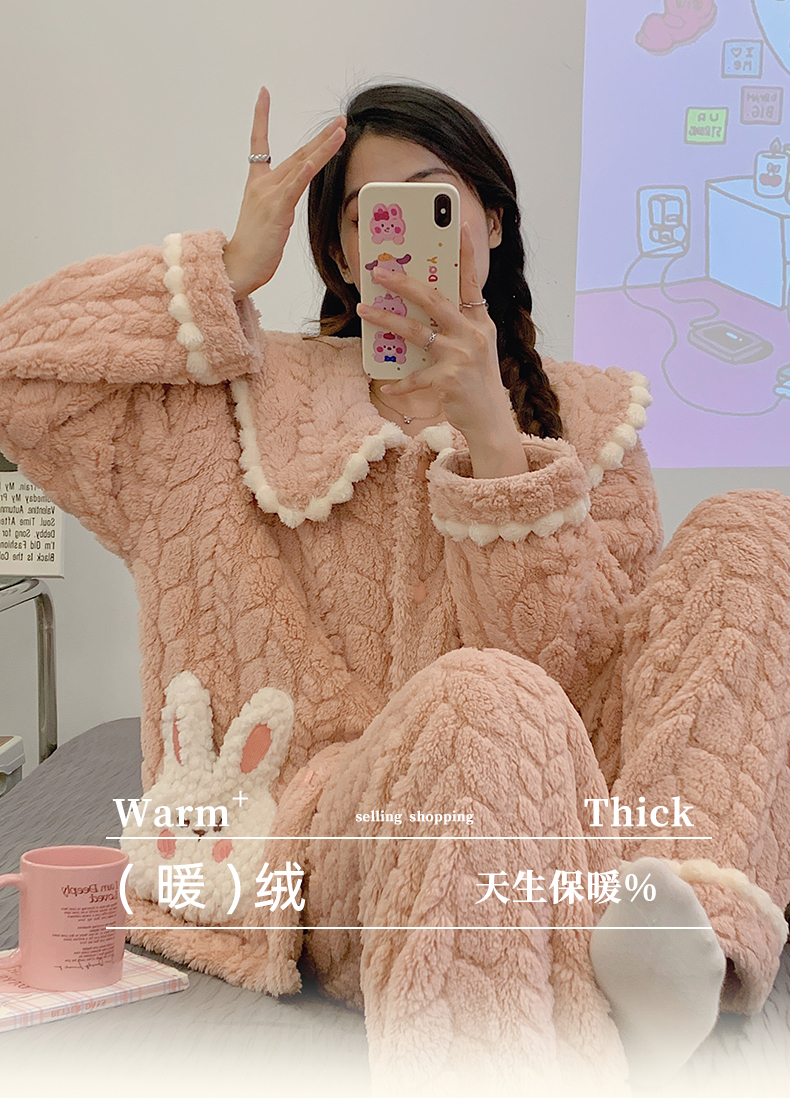 秋冬季保暖套裝加絨可愛珊瑚絨睡衣