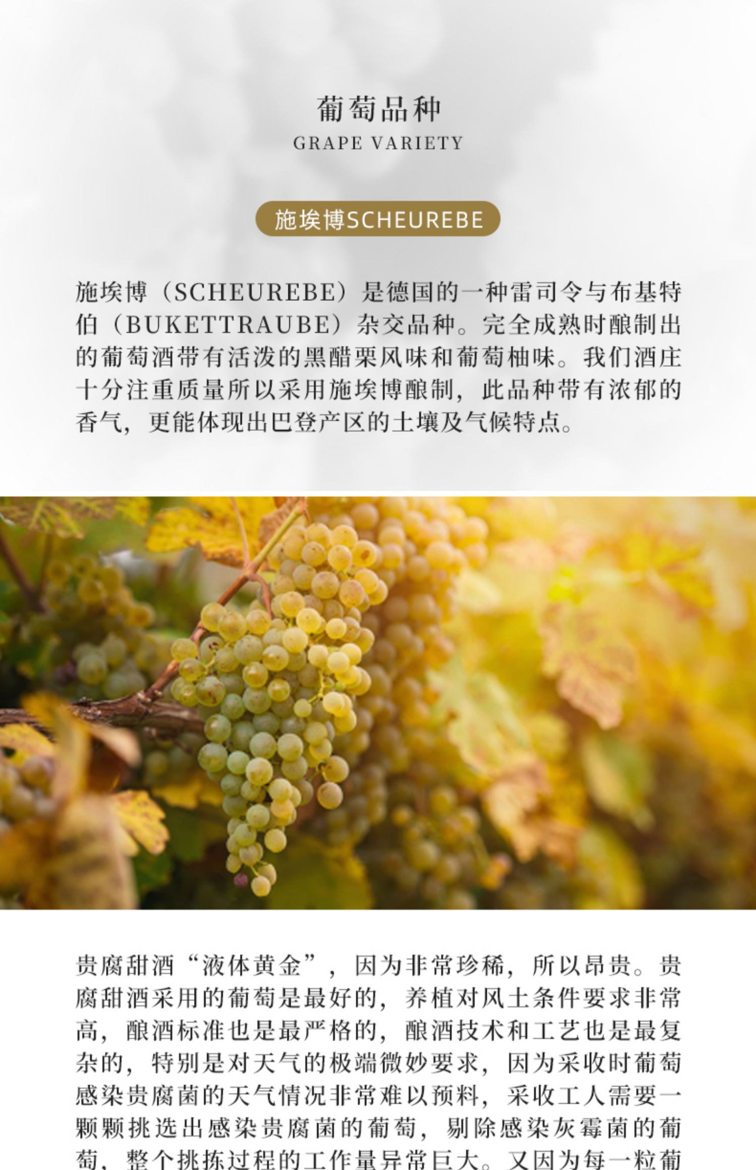 德國金猴谷 貴腐甜 施埃博Scheurebe QmP特優質甜白葡萄酒1支