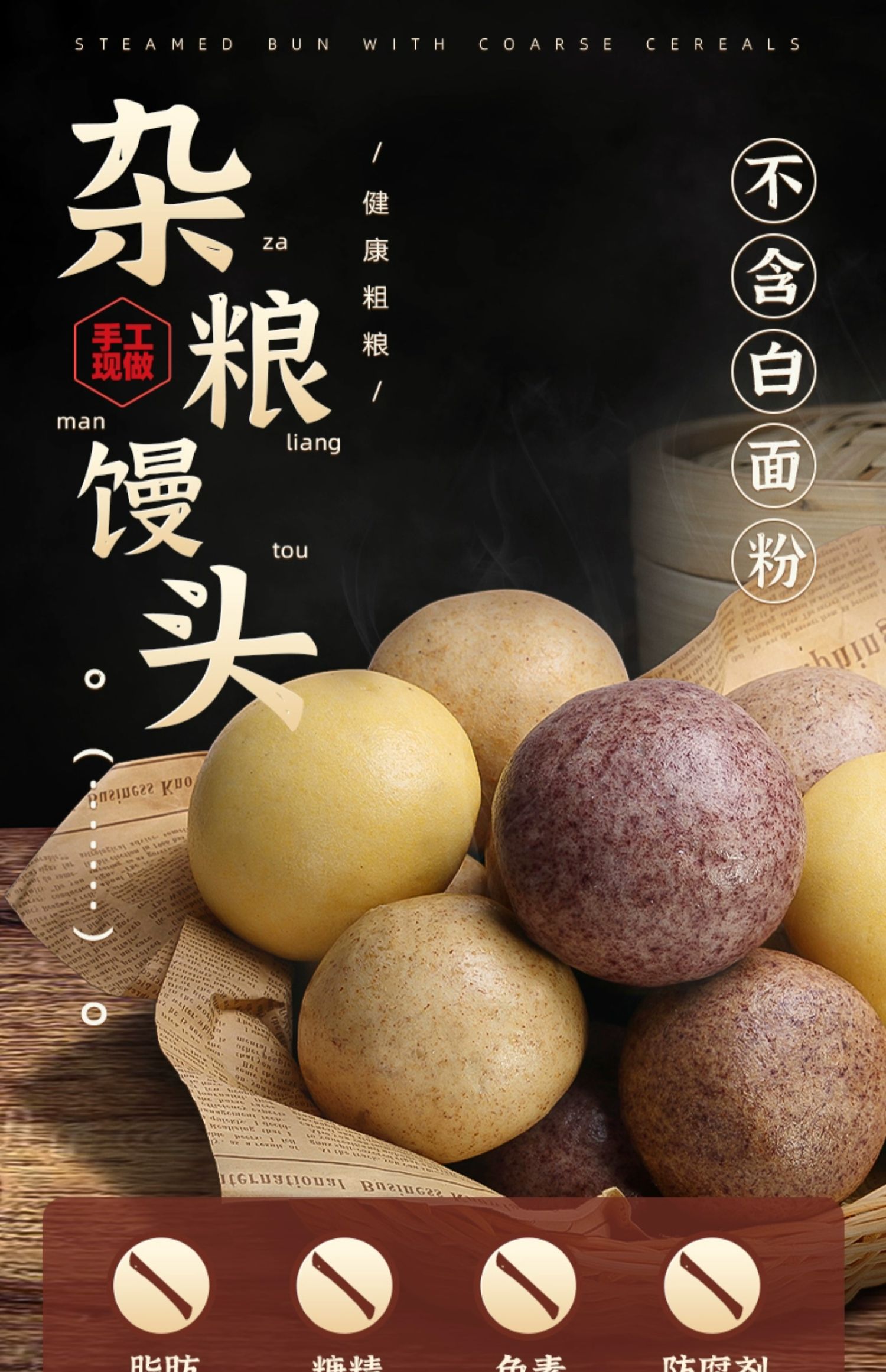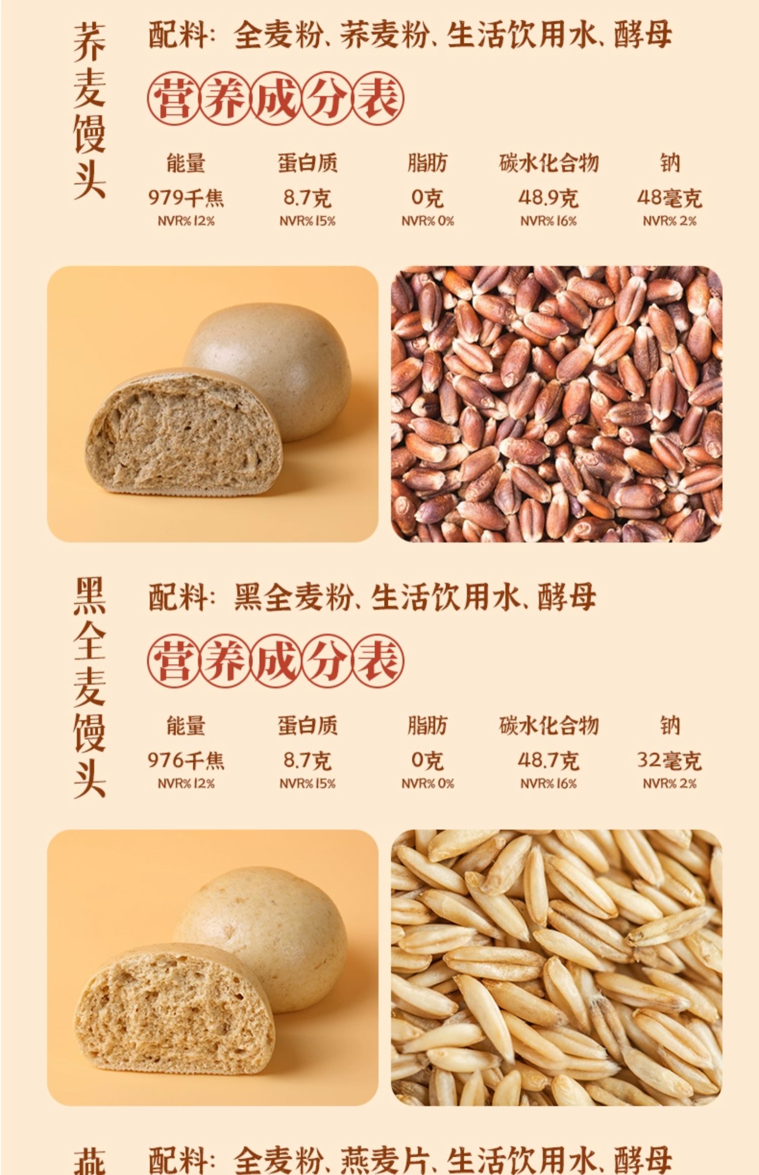 雜糧山東低脂無藜蕎全麥糖純孕饅頭