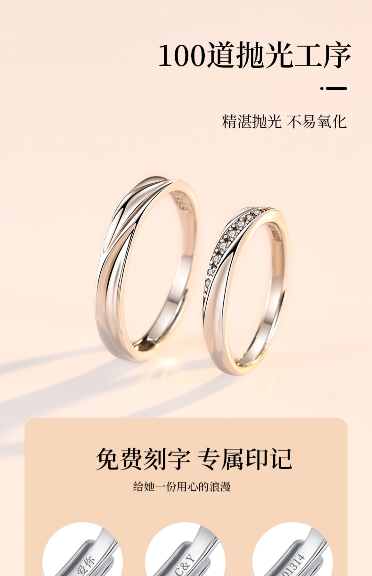 刻字s999純銀情侶款一對紀念款對戒