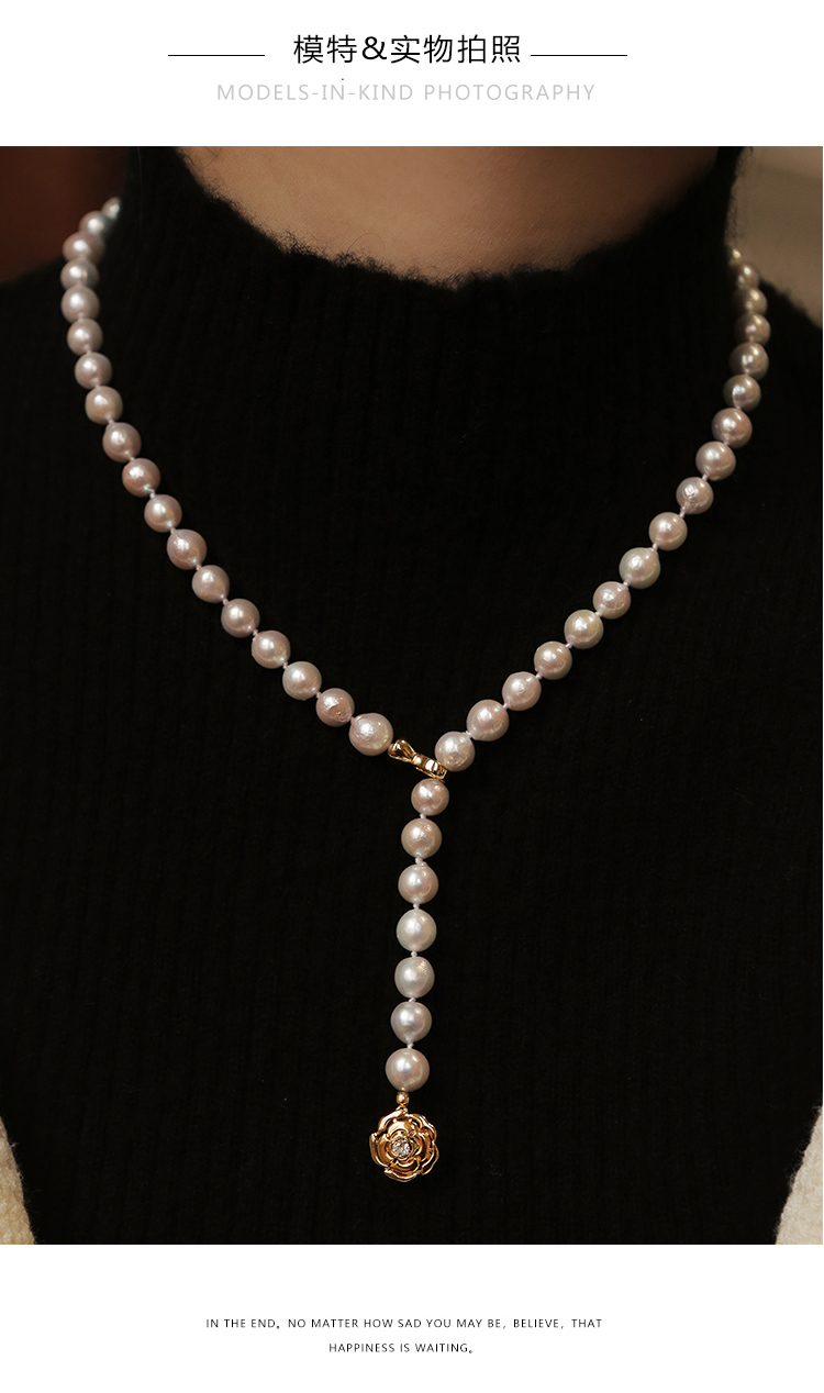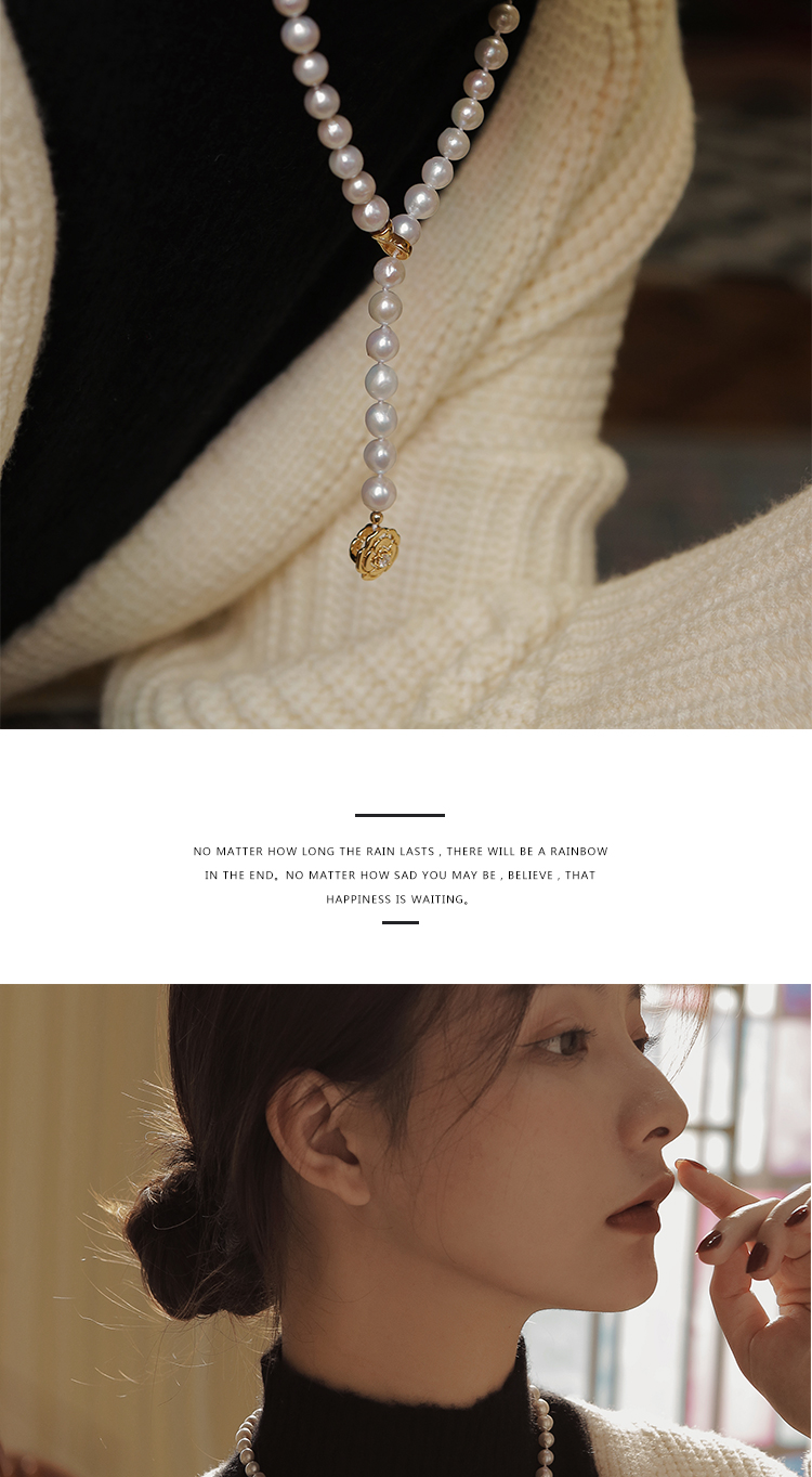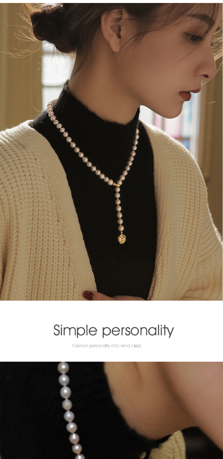春季新品長款拼接天然珍珠ol毛衣鏈