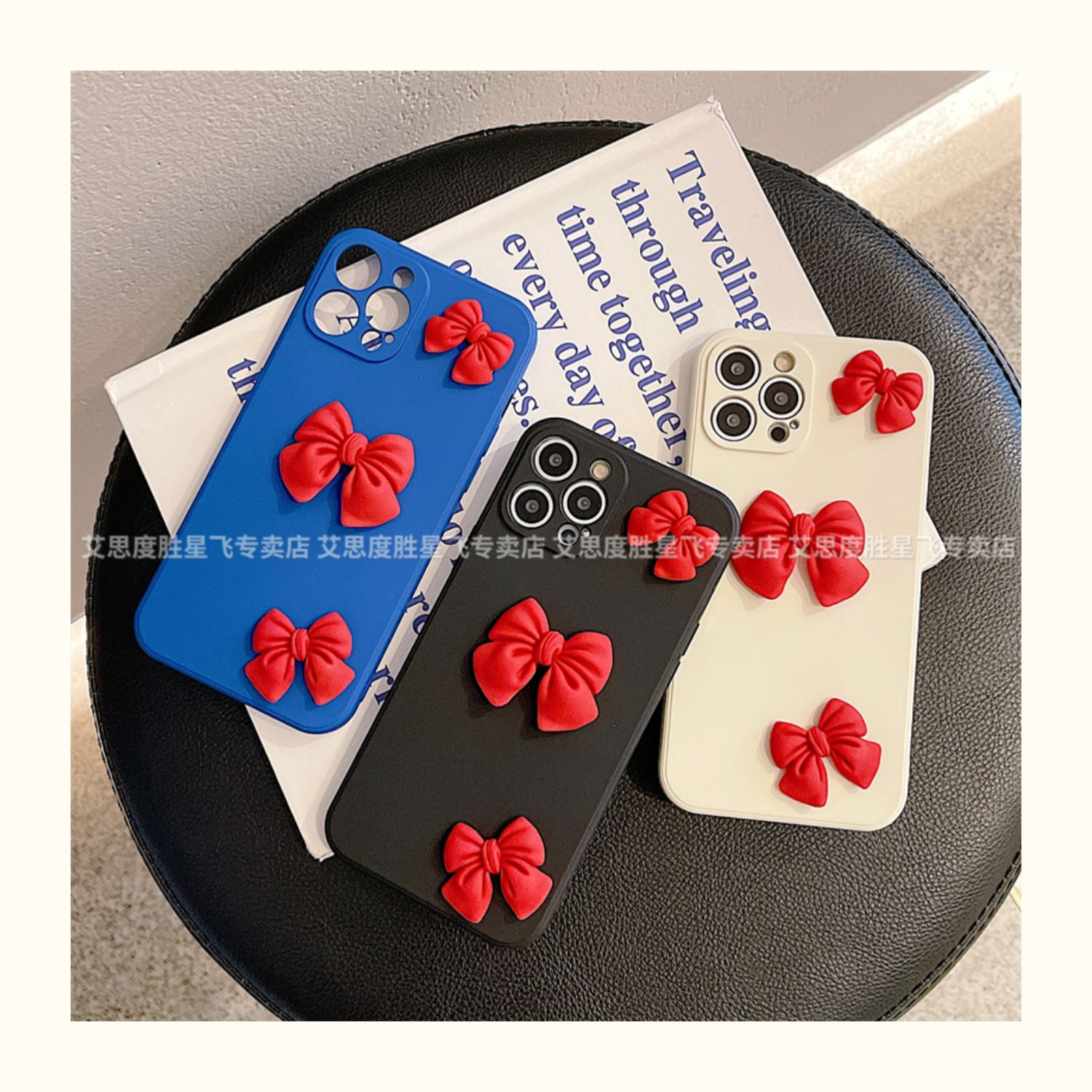 克萊因藍紅色蝴蝶結 ins風11手機殼