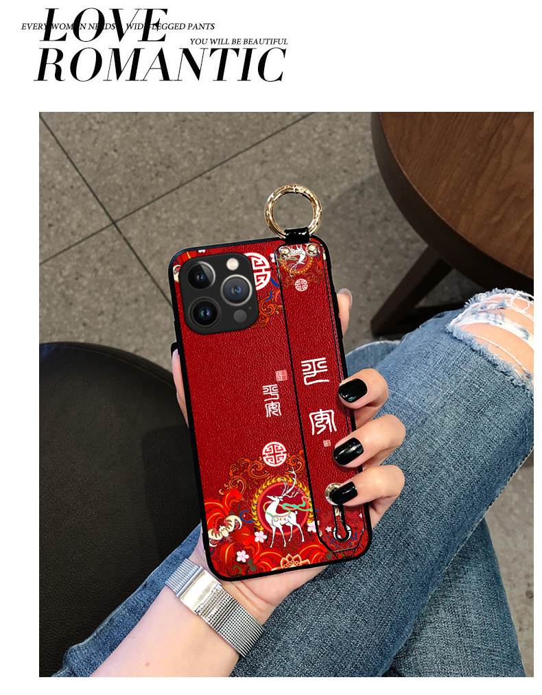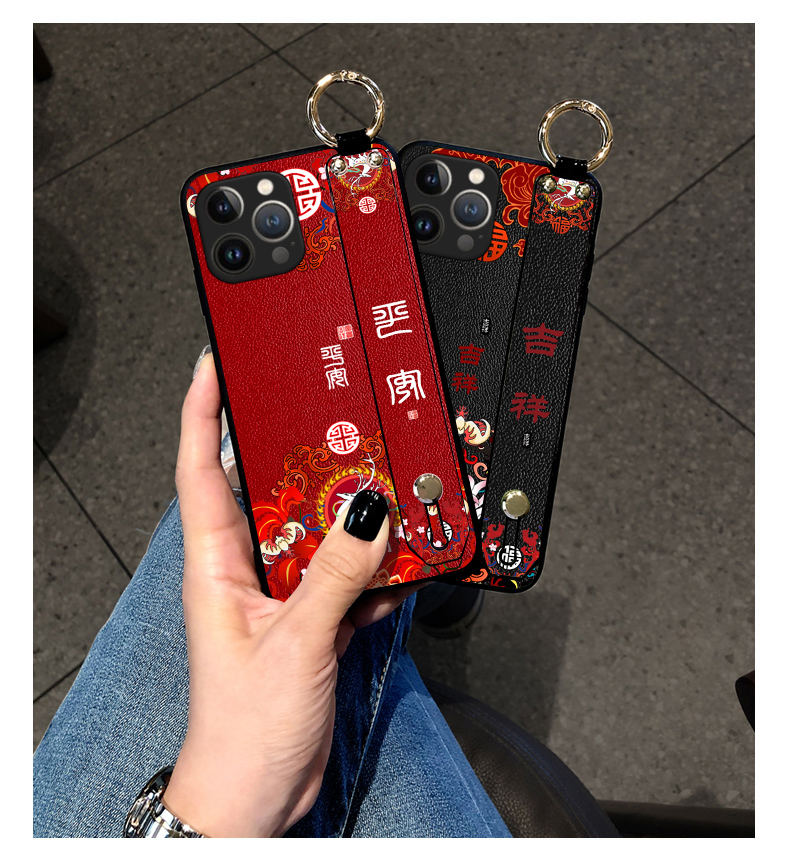 適用蘋果15promax手機殼iphone14保護套皮質感13pro腕帶款蘋果11平安吉祥12mini斜挎掛繩14plus外殼中國風潮