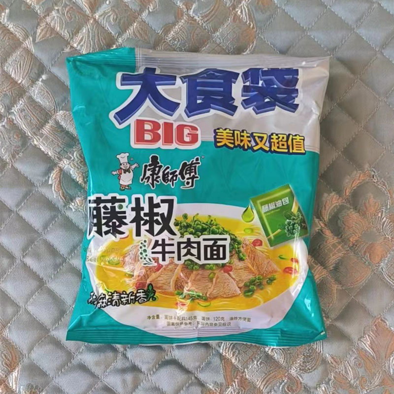 康師傅方便面大食袋裝泡面一倍半藤椒牛肉面145克速食整箱包郵