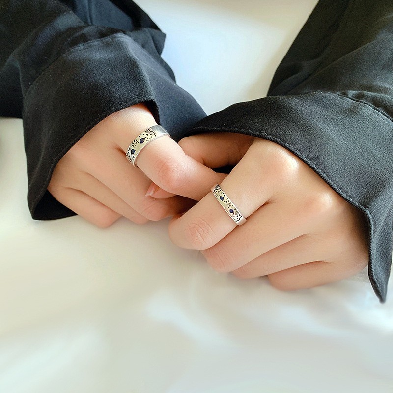 撞色貓眼石星星戒指女ins潮時尚個性情侶食指戒小眾設計開口指環