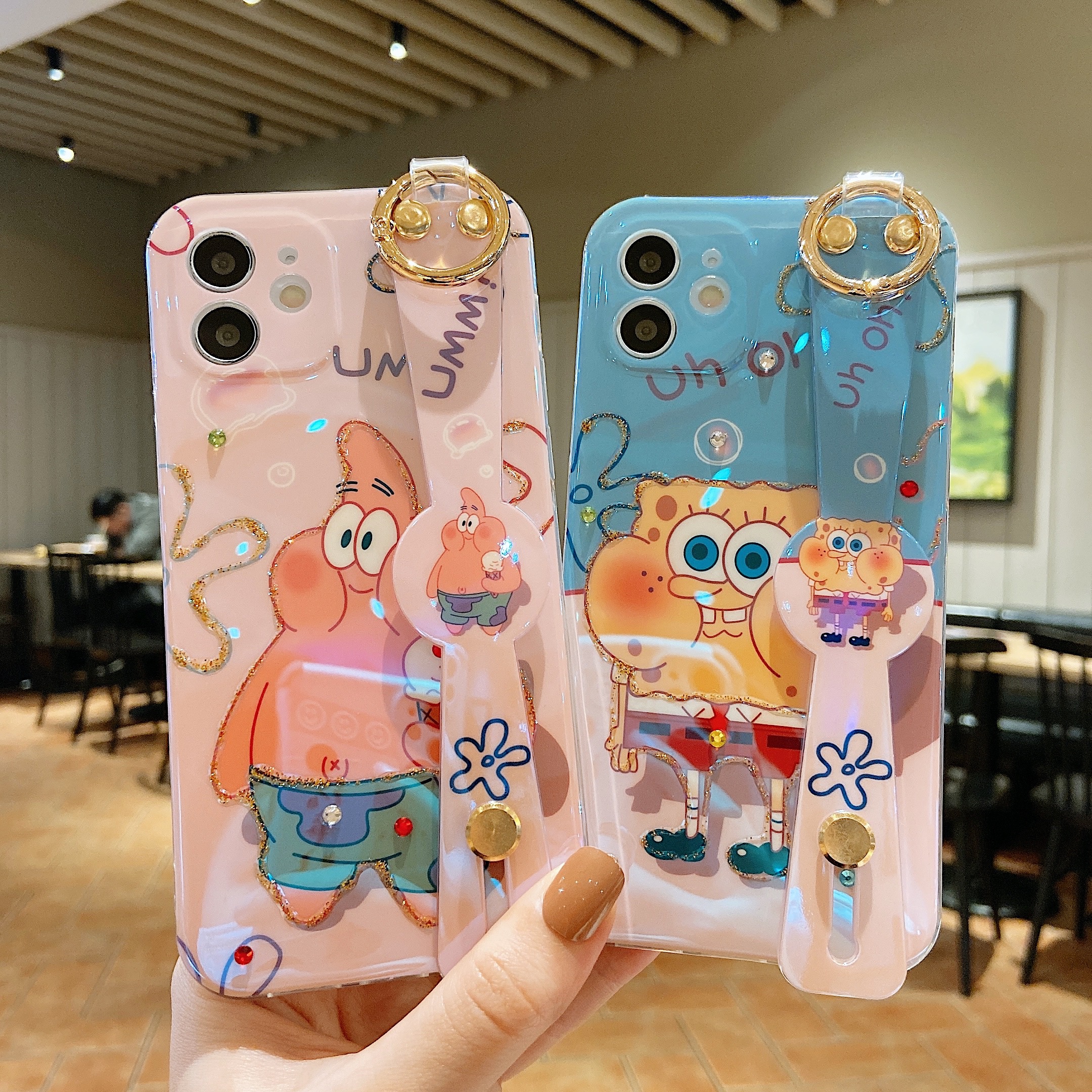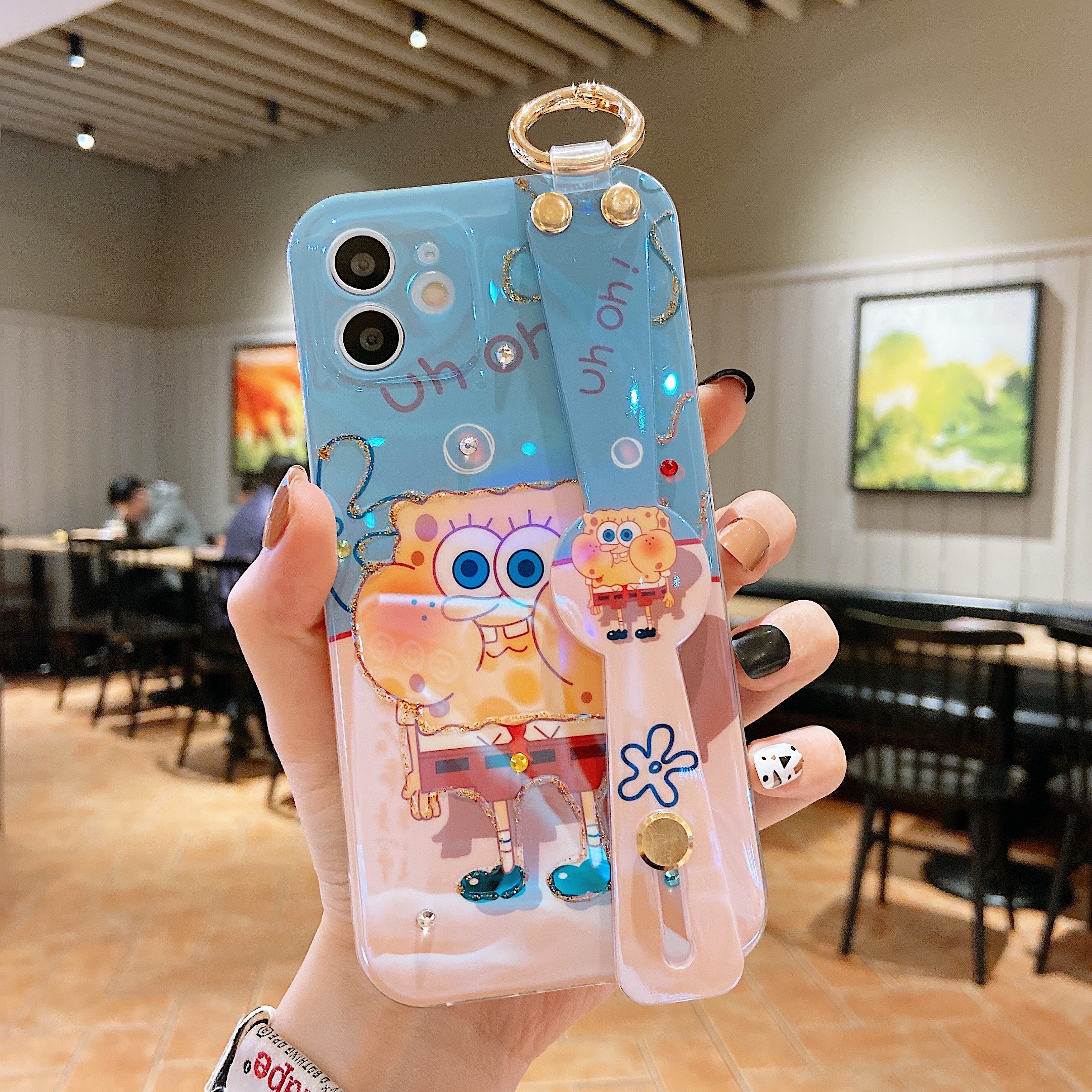 腕帶卡通海綿寶寶適用14蘋果12pro手機殼iphone13潮牌x女11情侶軟
