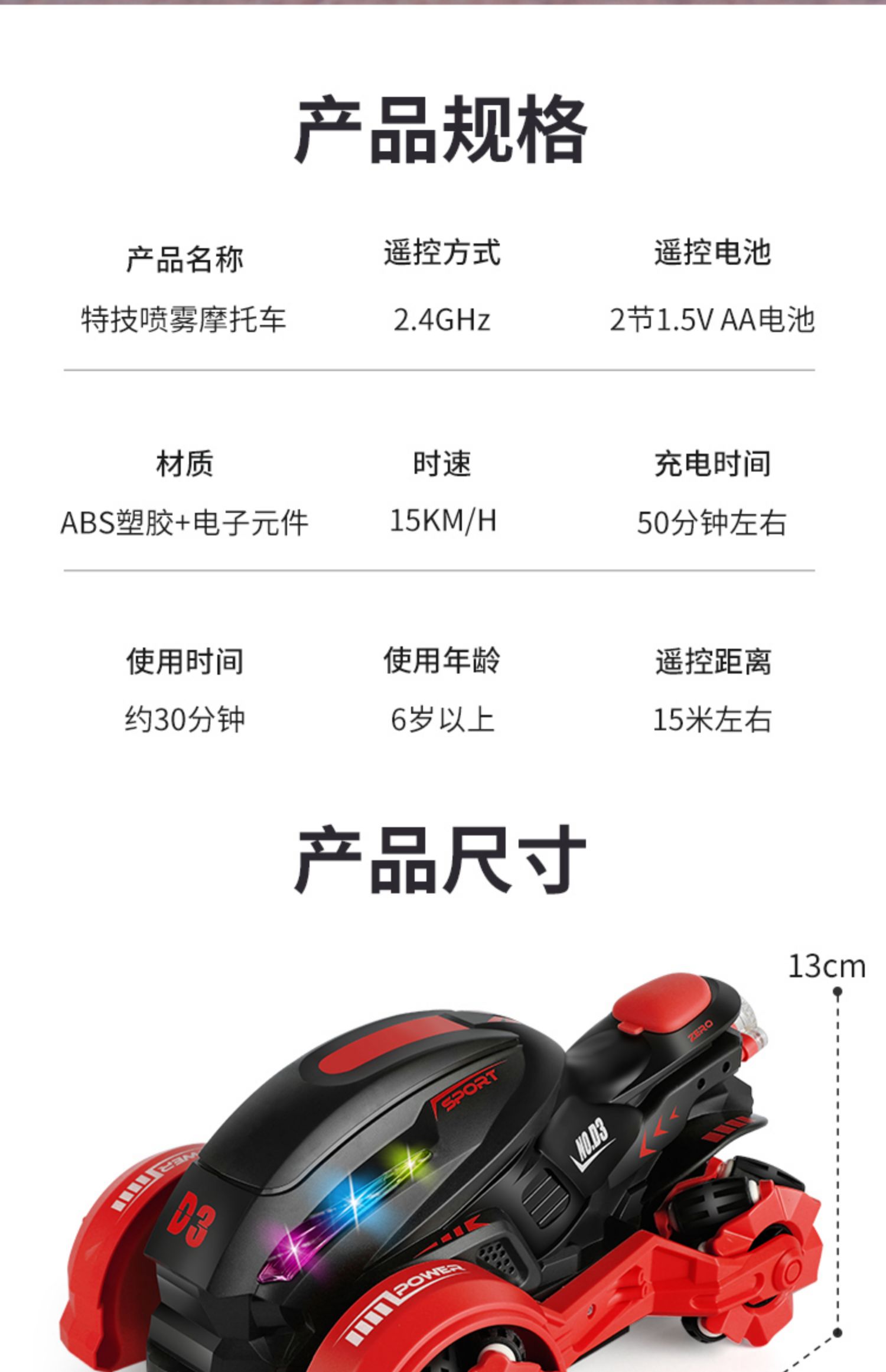 遙控燈光噴霧摩托跑車手柄兒童玩具