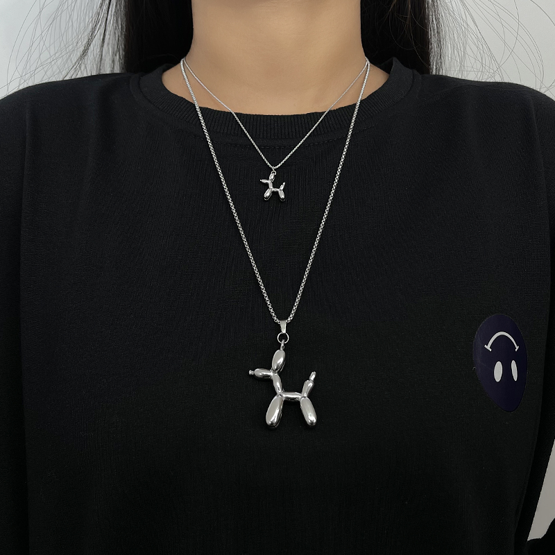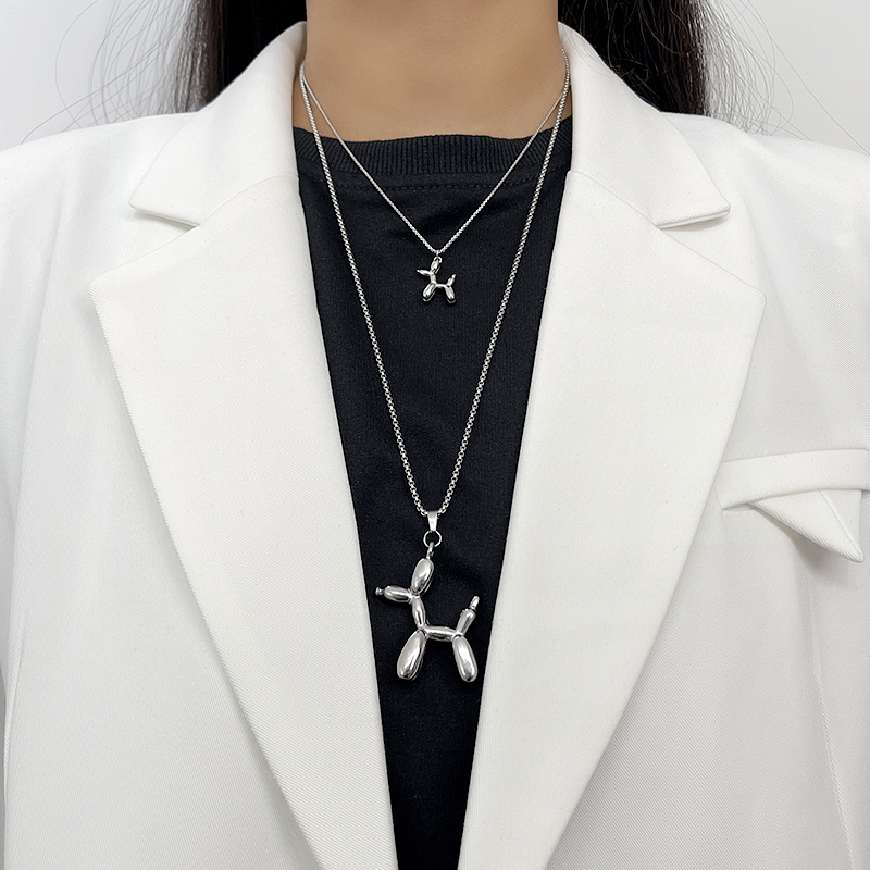 氣球狗情侶毛衣項鏈ins潮土酷蹦迪鎖骨鏈輕奢小眾男女吊墜衛衣鏈