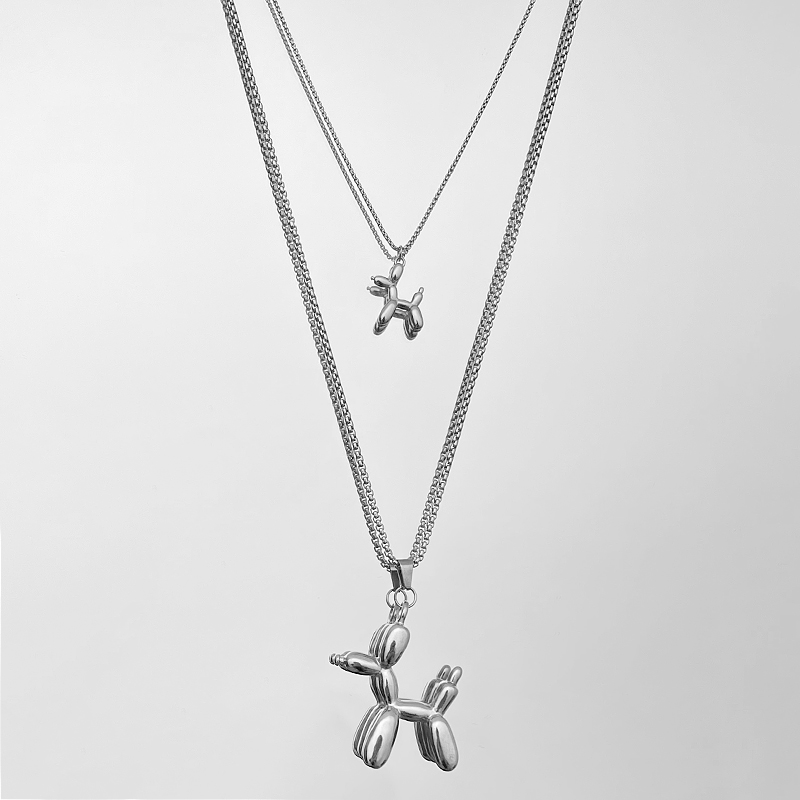UNBEATEN銀色微鑲氣球狗項鏈女輕奢小眾設計高級感鎖骨鏈2023新款