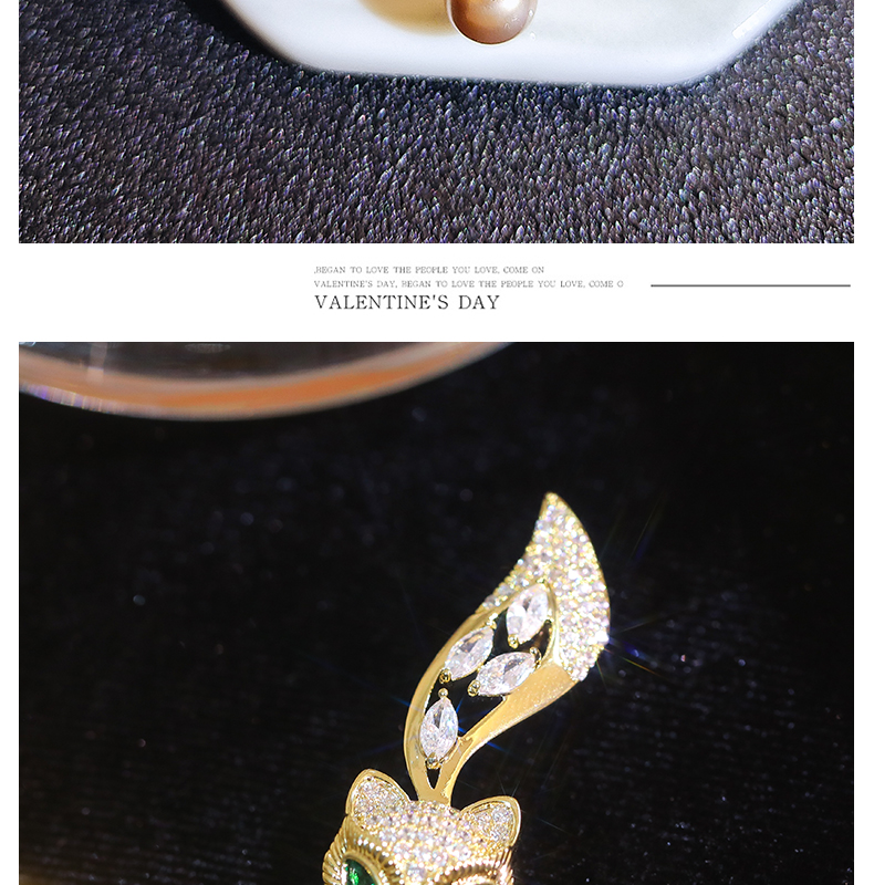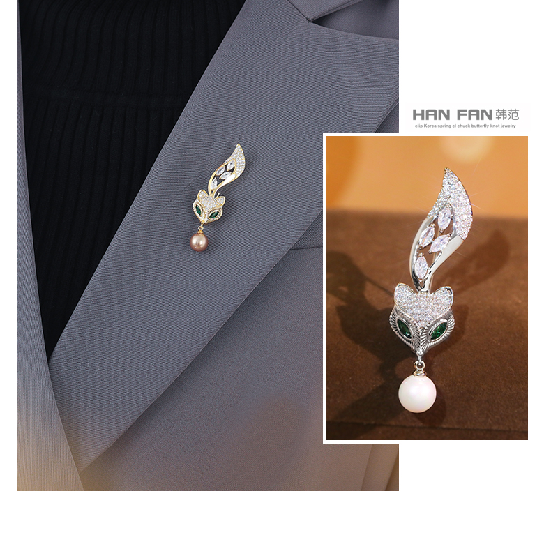 狐貍胸針女高檔時尚外套大衣開衫別針奢華鋯石胸花韓國珍珠配飾品