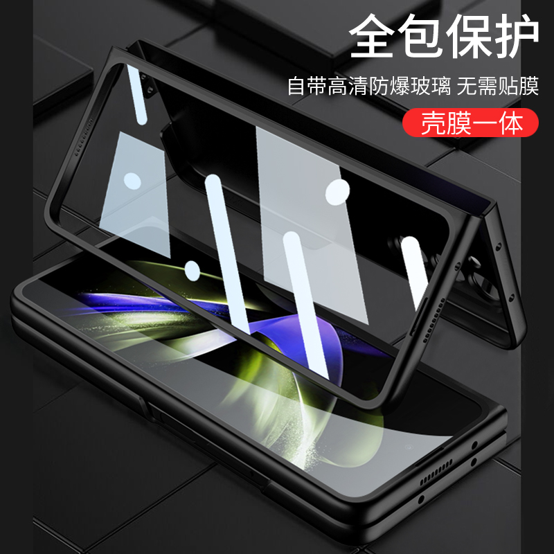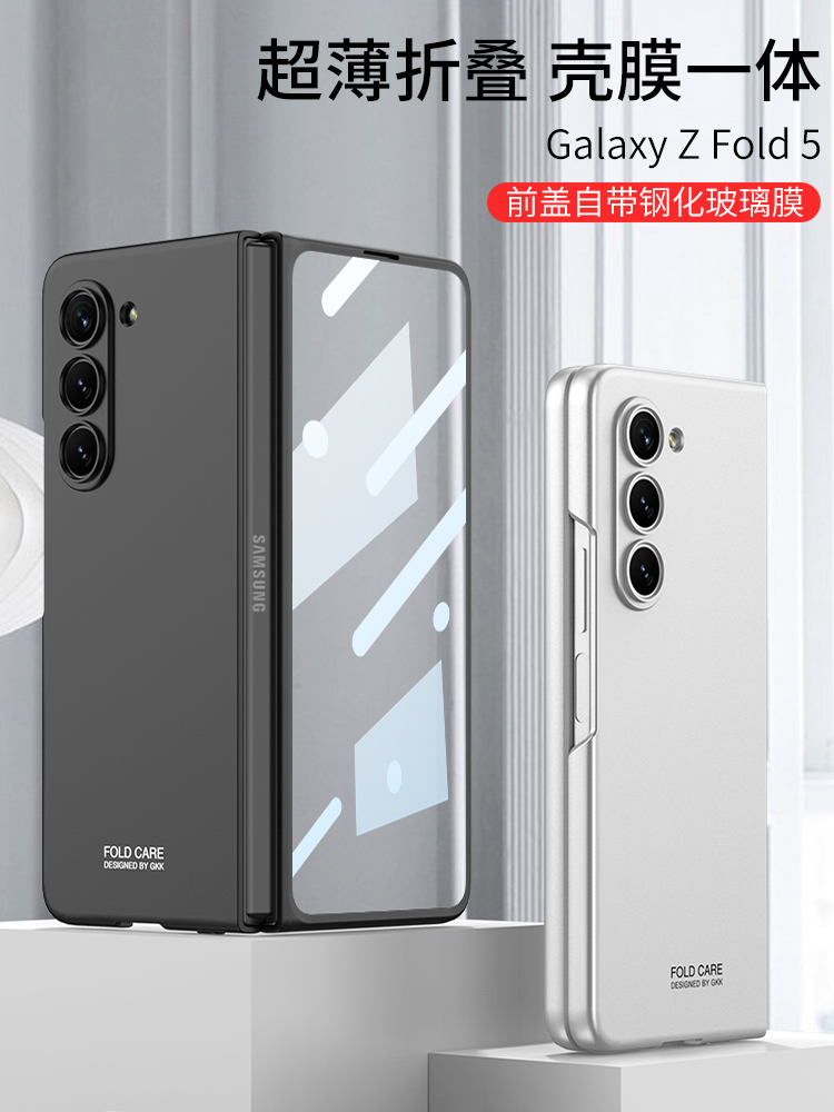 三星fold5手機殼新款素皮Galaxy Z Fold5折疊屏保護套fold4真皮網紅超薄防摔高級感W23全包殼膜一體fold3外殼