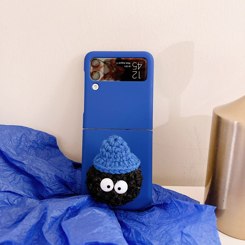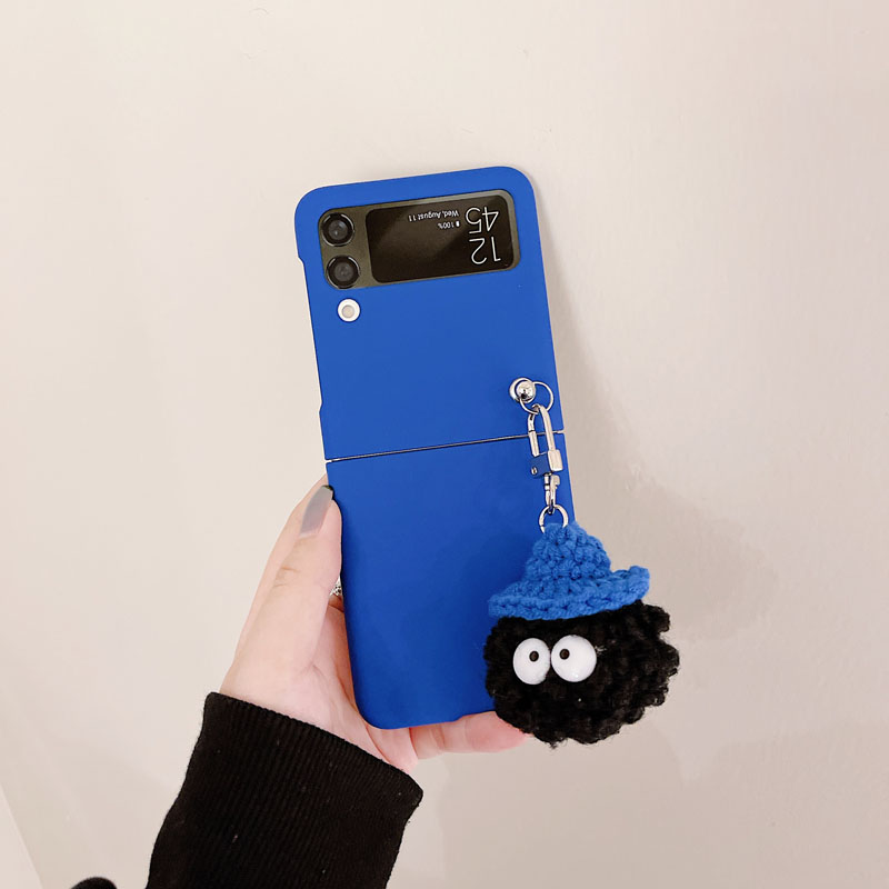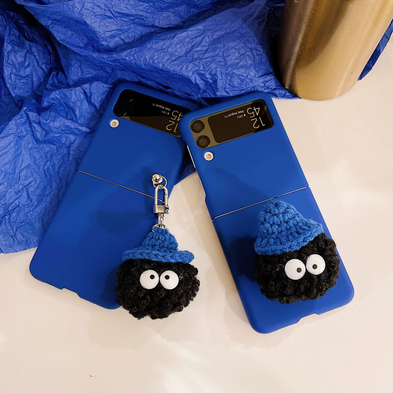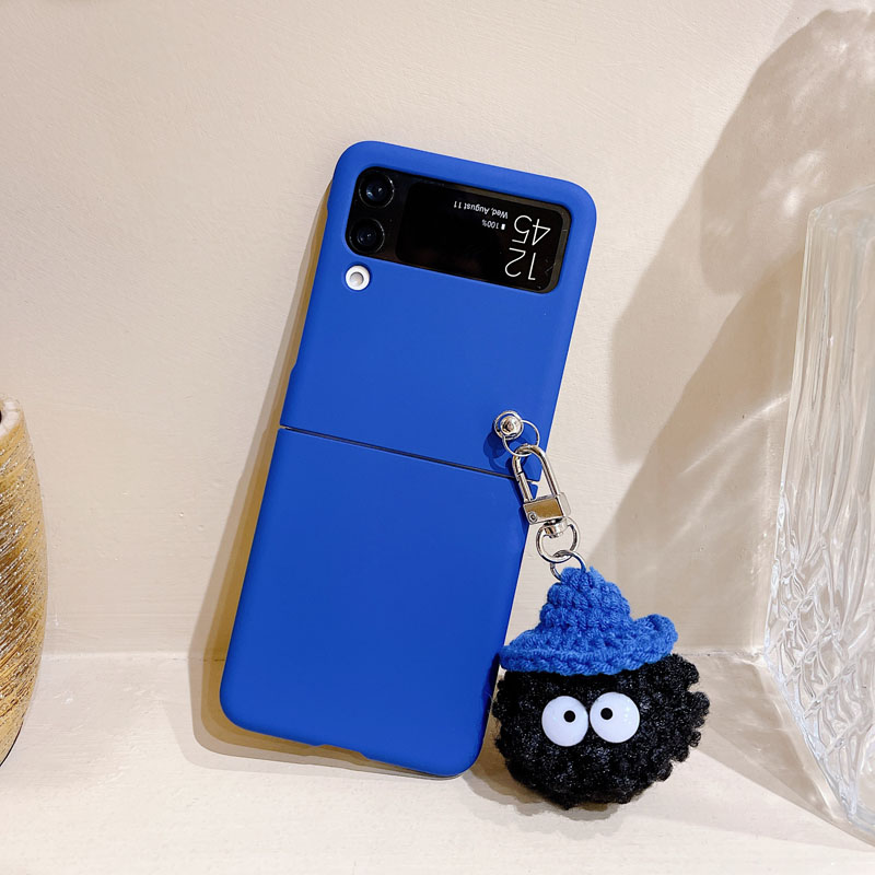克萊因藍適用三星zflip5手機殼折疊屏可愛卡通毛球毛絨吊墜INS風簡約純色硬flip4保護套三代支架zflip 3殼四4