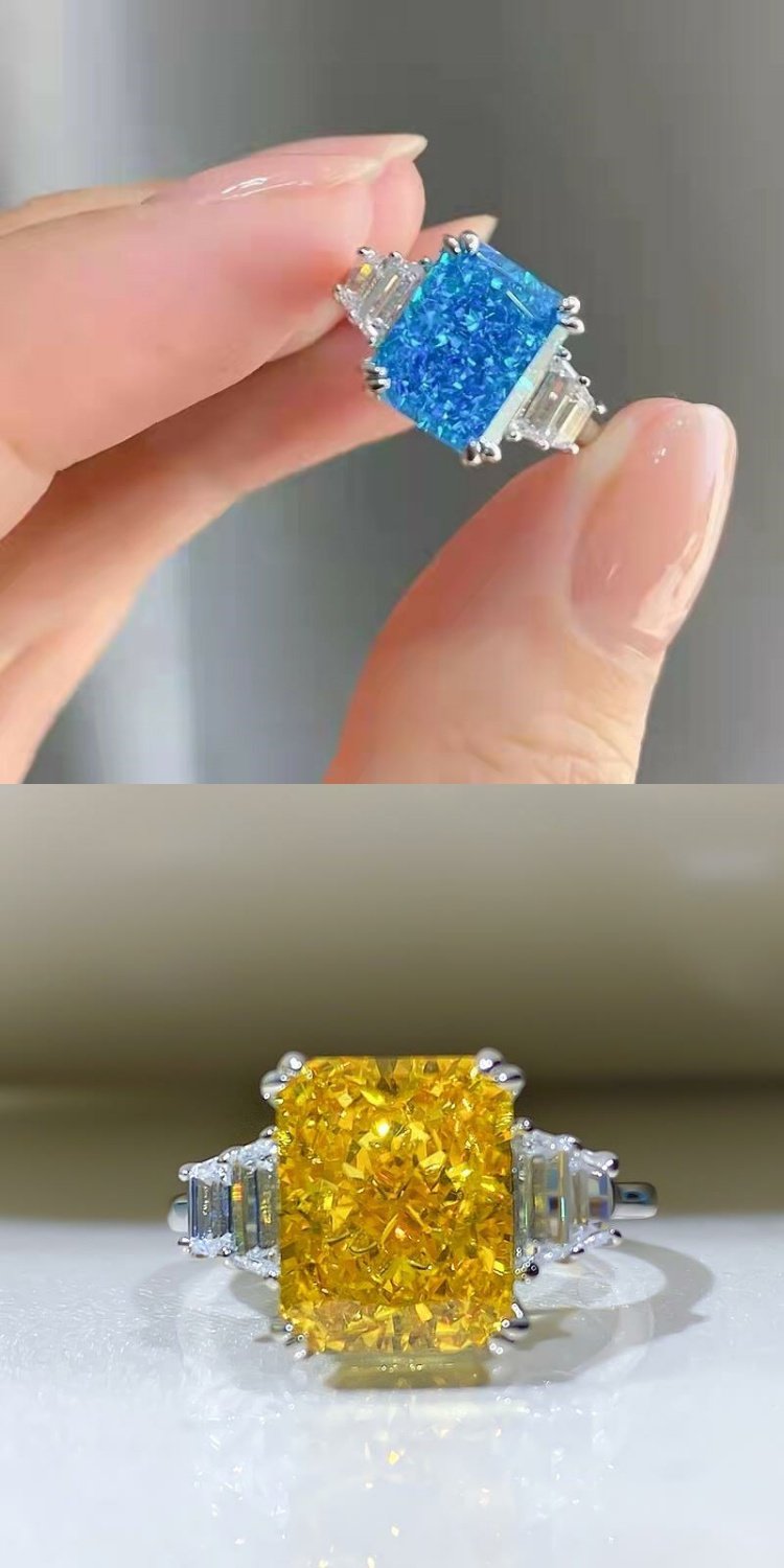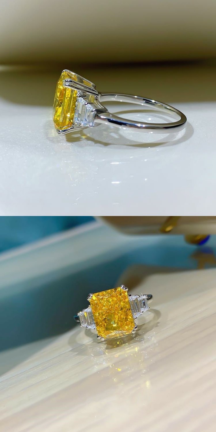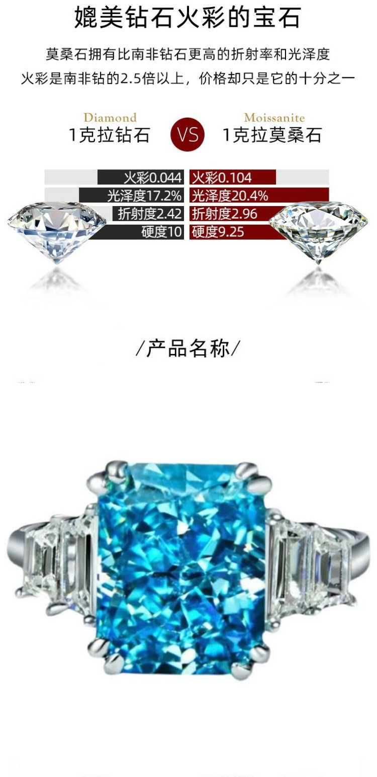 PT950鉑金進口莫桑石簡約冰糖長方形4克拉鉆戒不掉色食指戒指女新