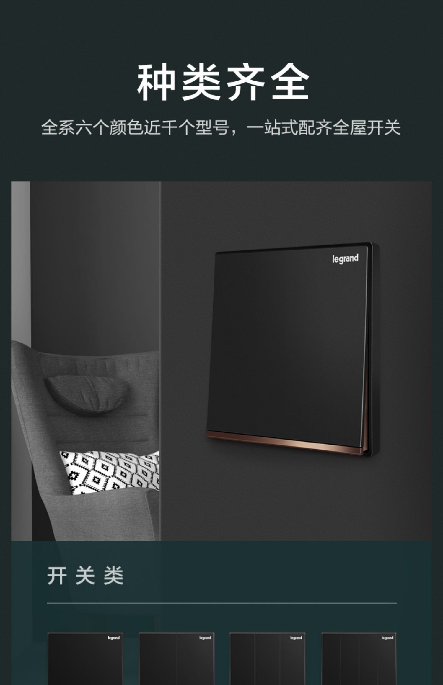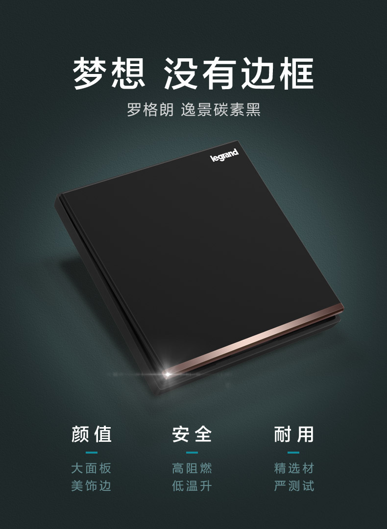 羅格朗逸景碳素黑led開關插座面板
