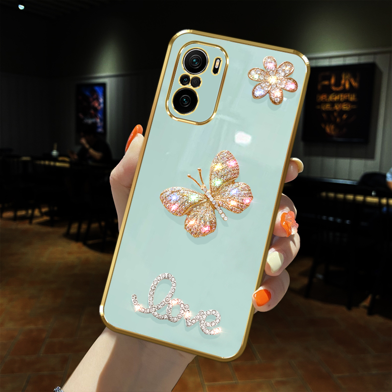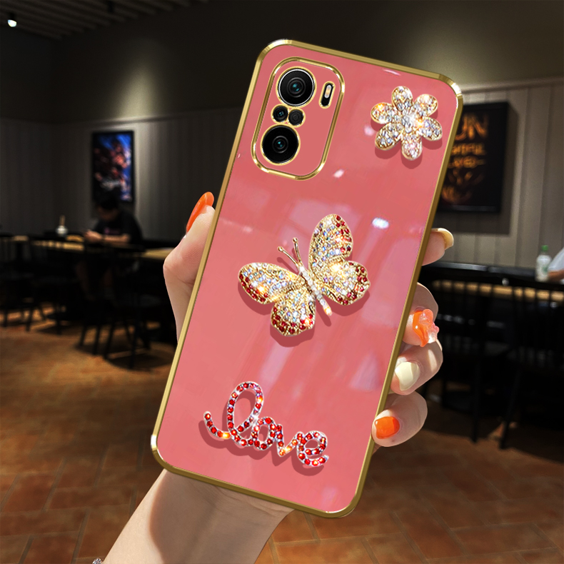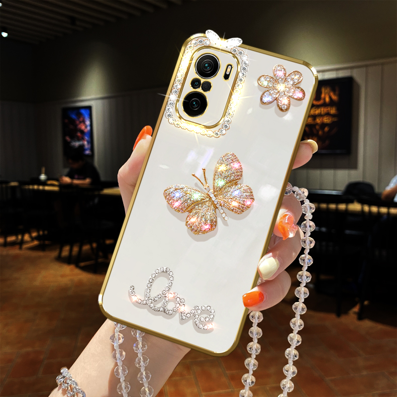適用Redmi紅米k40手機殼pro閃鑲鉆K30蝴蝶水晶S至尊紀念版游戲增強K20全包鏡頭掛繩鏈子女款軟防摔潮流保護套