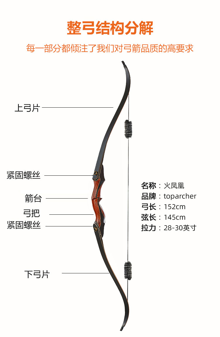 HUWAIREN火鳳凰傳統美獵反曲弓射箭弓箭射擊運動競技分體層壓傳統