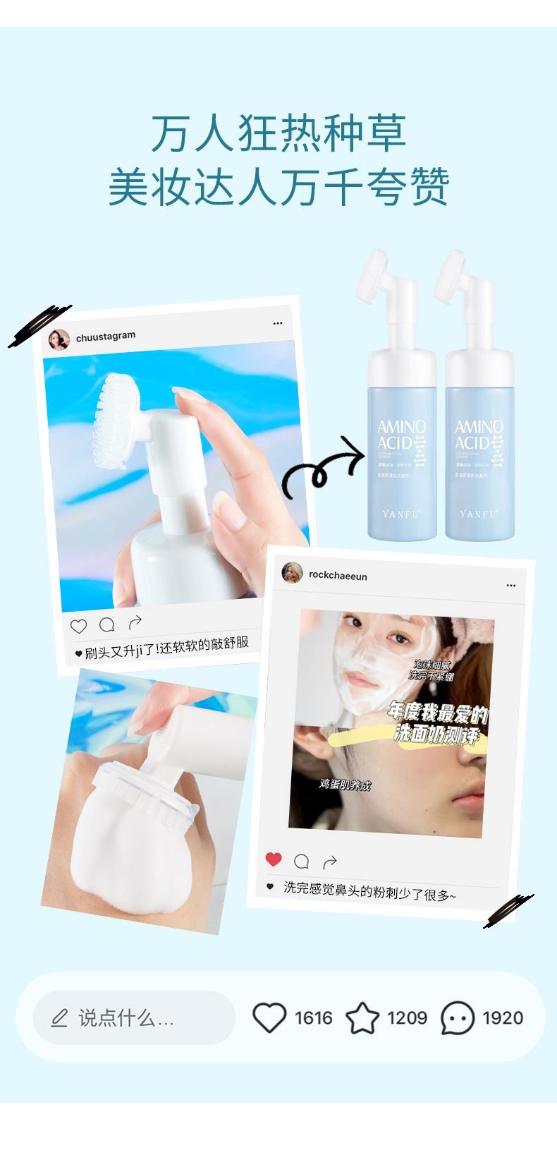 慕斯泡沫氨基酸洗面奶潔面深層清潔收縮毛孔男女帶刷頭卸妝二合一