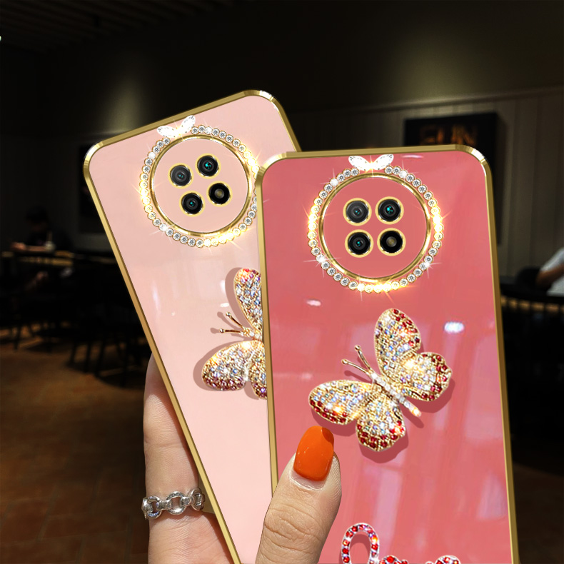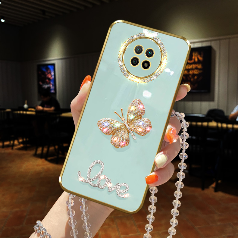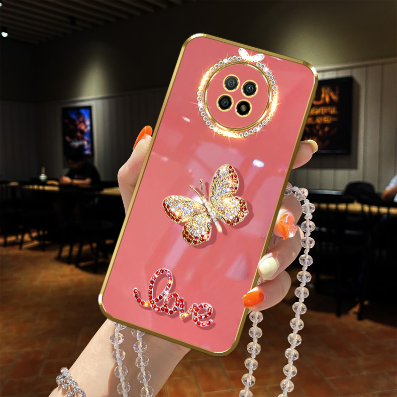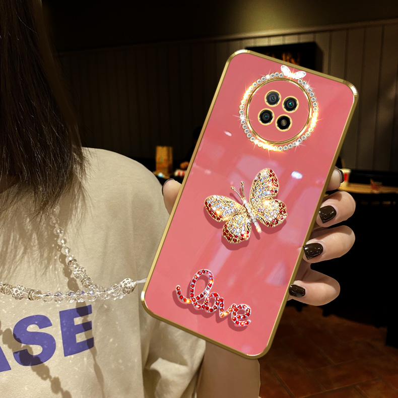 適用Redmi紅米NOTE9手機殼pro水閃鑲鉆note蝴蝶花朵7水晶8掛繩鏈子4G女款M1901F7C全包鏡頭E防摔5G軟T保護套