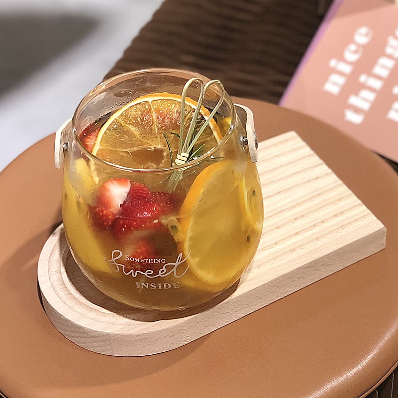歐式網紅ins玻璃水果茶杯田園風手提果汁杯高顏值耐熱奶茶飲料杯