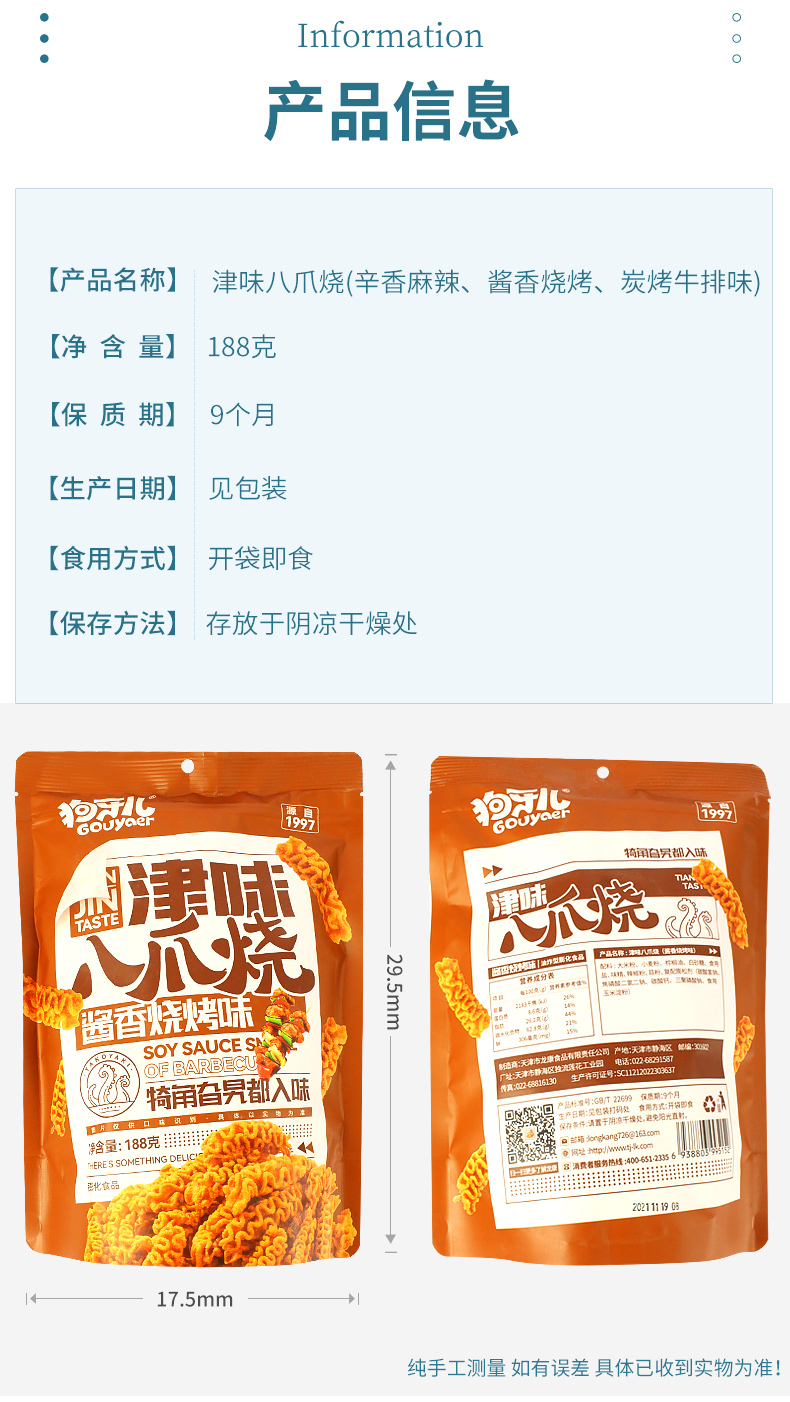 狗牙兒八爪燒188g*3袋鍋巴吃貨8090后懷舊兒時小零食小吃休閑食品