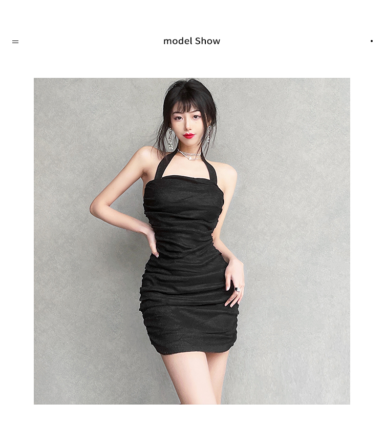 WEIRD PUSS甜辣設計感褶皺掛脖連衣裙女性感露肩打底裙收腰包臀裙