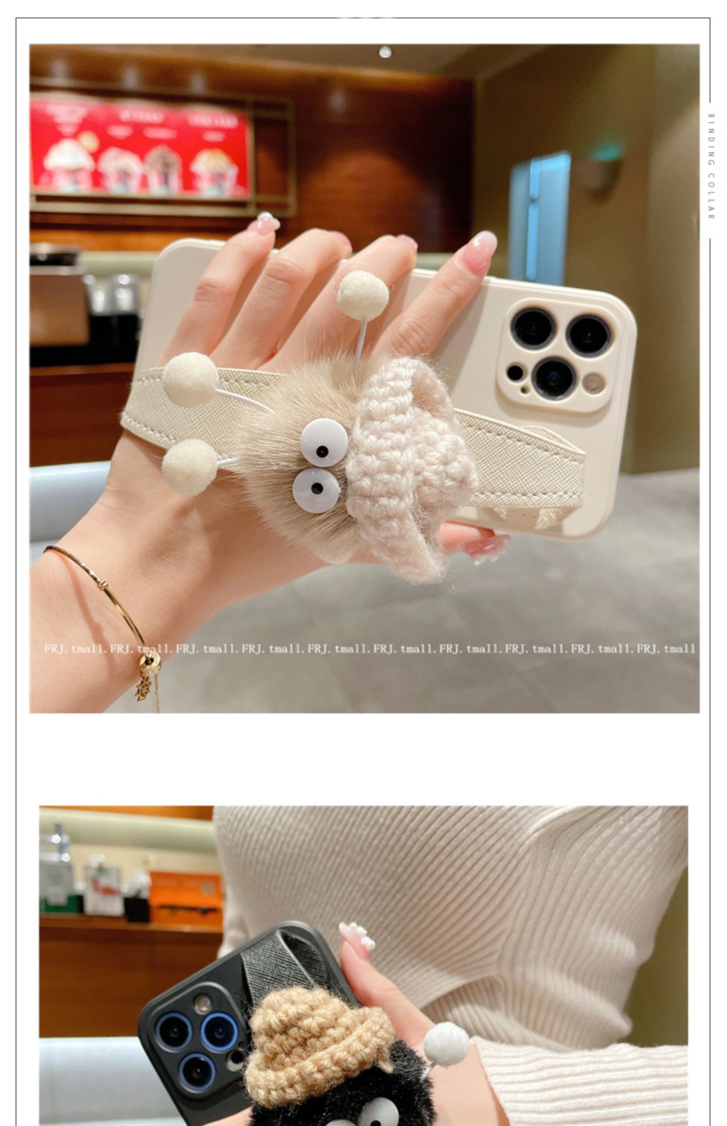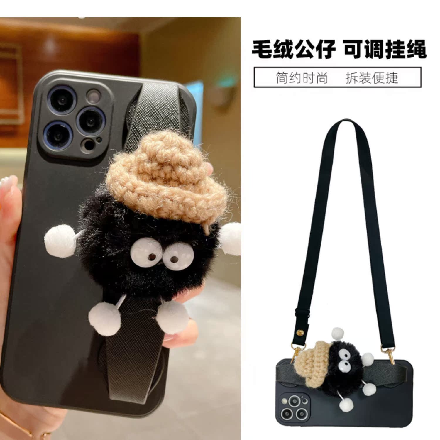 煤球腕帶適用iphone15手機殼14promax斜挎蘋果13新款毛絨iphone12可愛7/8plus秋冬XR掛繩11個性女14pro硅膠套