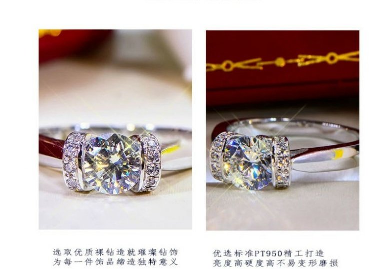 pt950鉑金光臂蛋糕進口莫桑石鉆戒