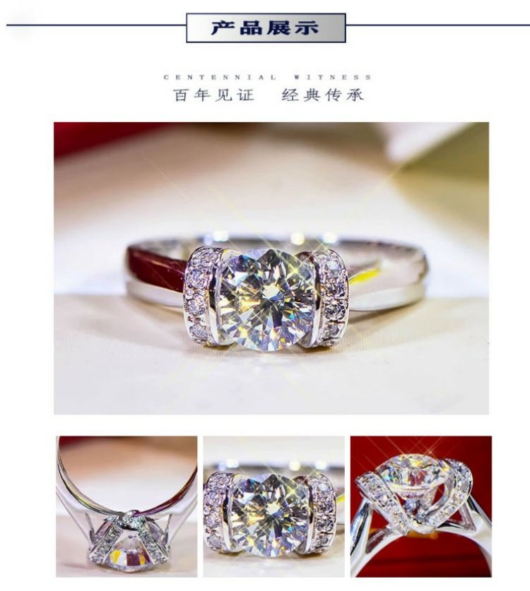 莫桑石鉆戒一克拉女純銀情侶戒指
