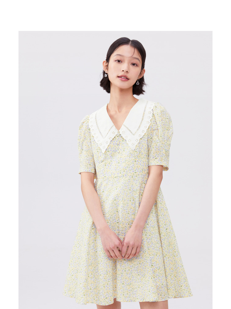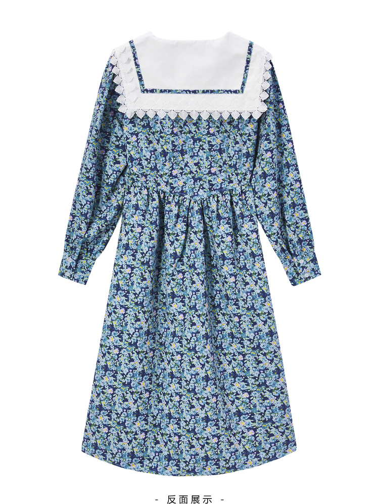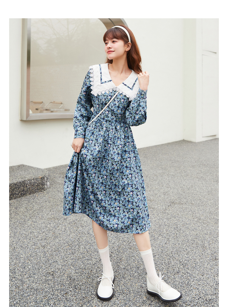 森馬連衣裙女大翻領長裙寬松2022春新款田園風法式碎花裙氣質雪紡