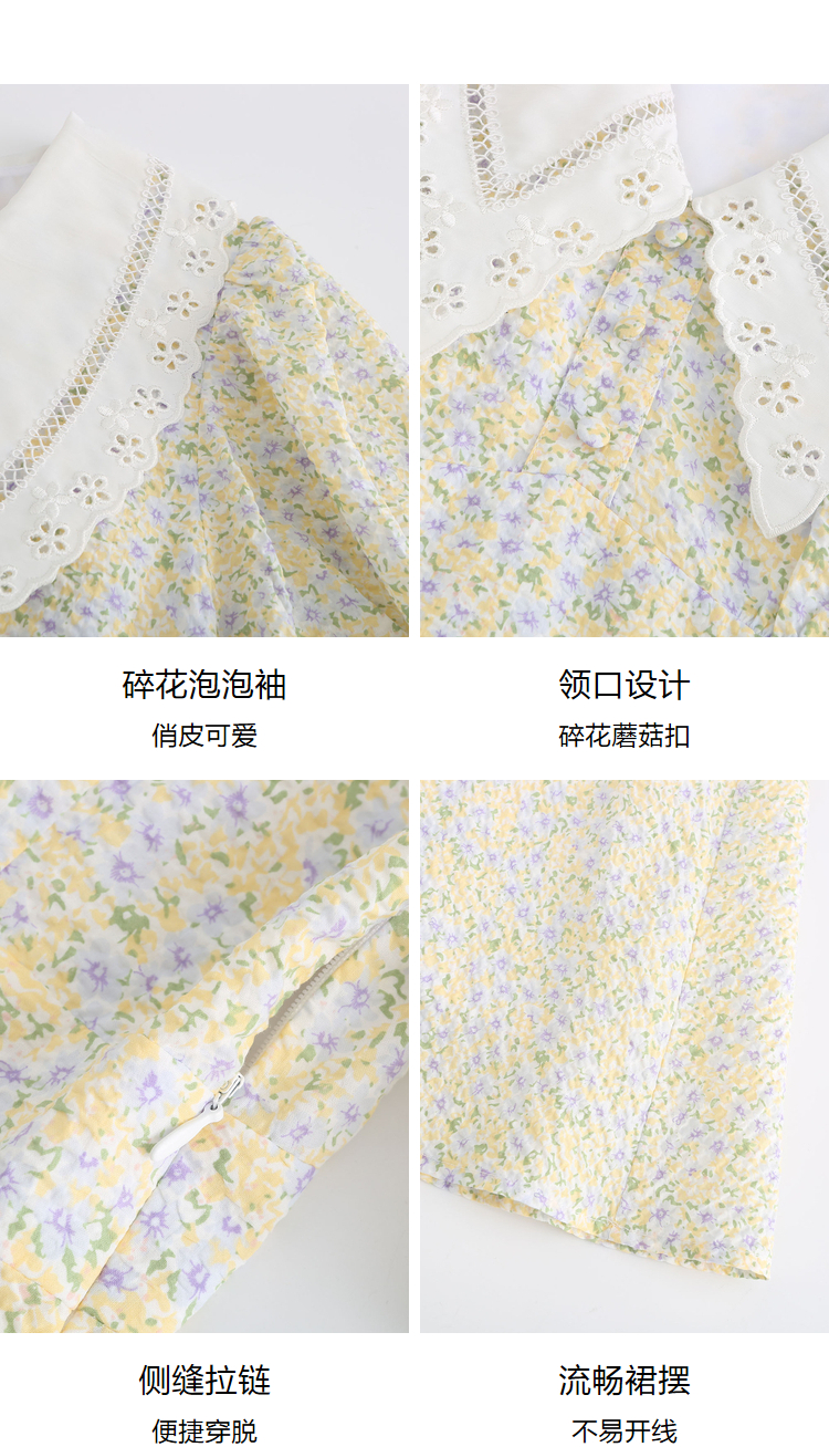 森馬連衣裙女泡泡袖少女感滿印小黑裙2022冬新款花邊翻領裙子甜美