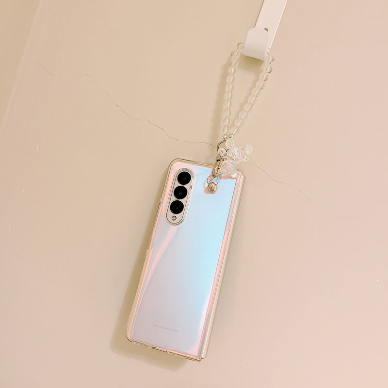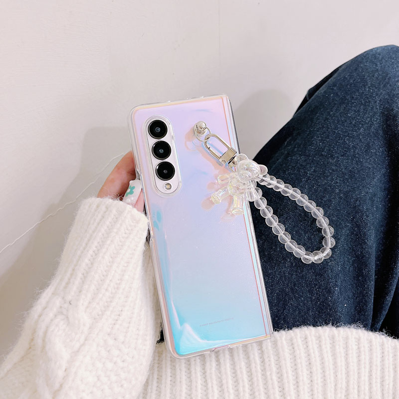 韓風小熊適用三星zfold5手機殼折疊屏可愛鐳射INS風透明蝴蝶手提手鏈硬殼防摔保護套zfold4少女感z fold3三4