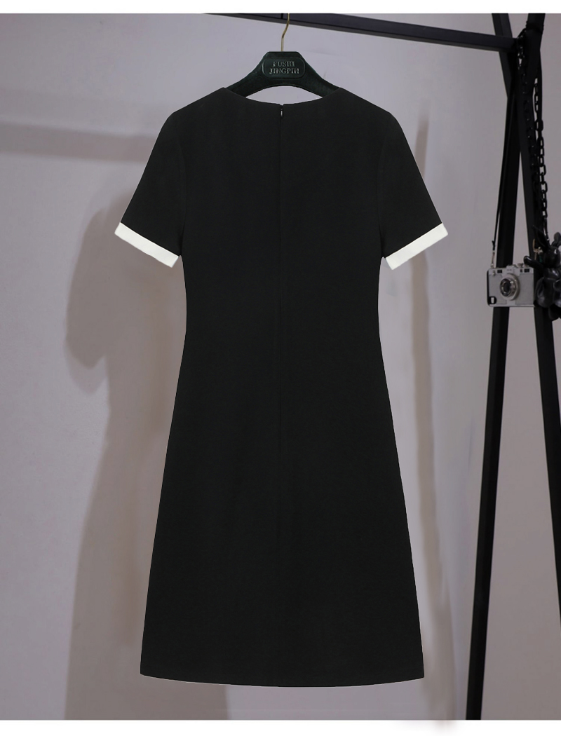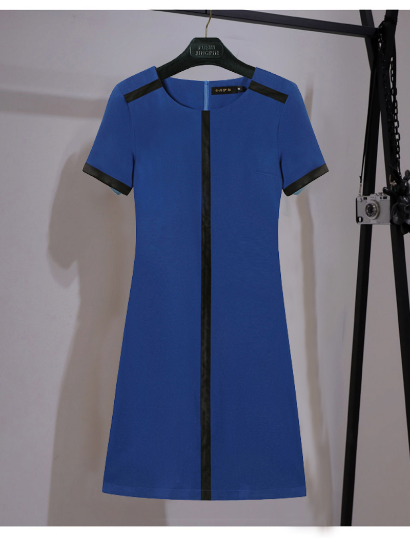 2023夏新款醋酸氣質顯瘦圓領連衣裙