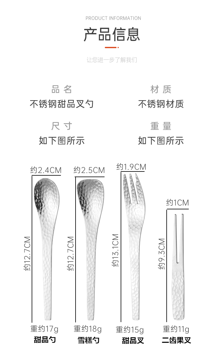 日式ins錘紋304不銹鋼甜品勺金色水果叉子錘印咖啡勺雪糕勺蛋糕叉