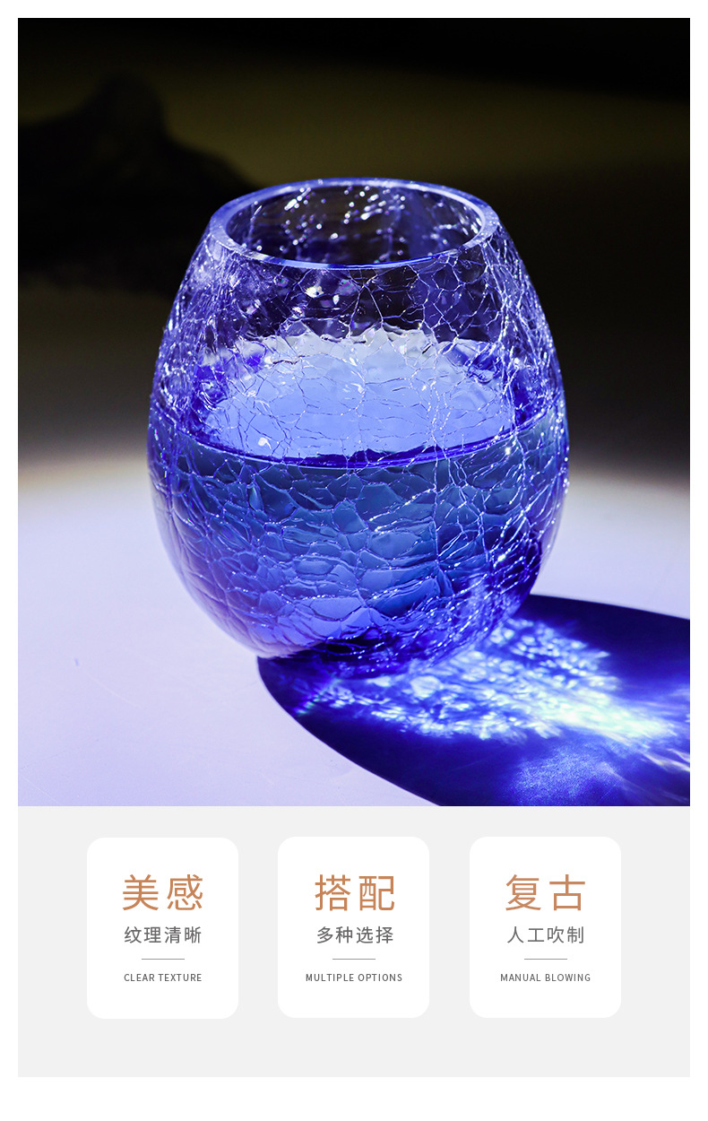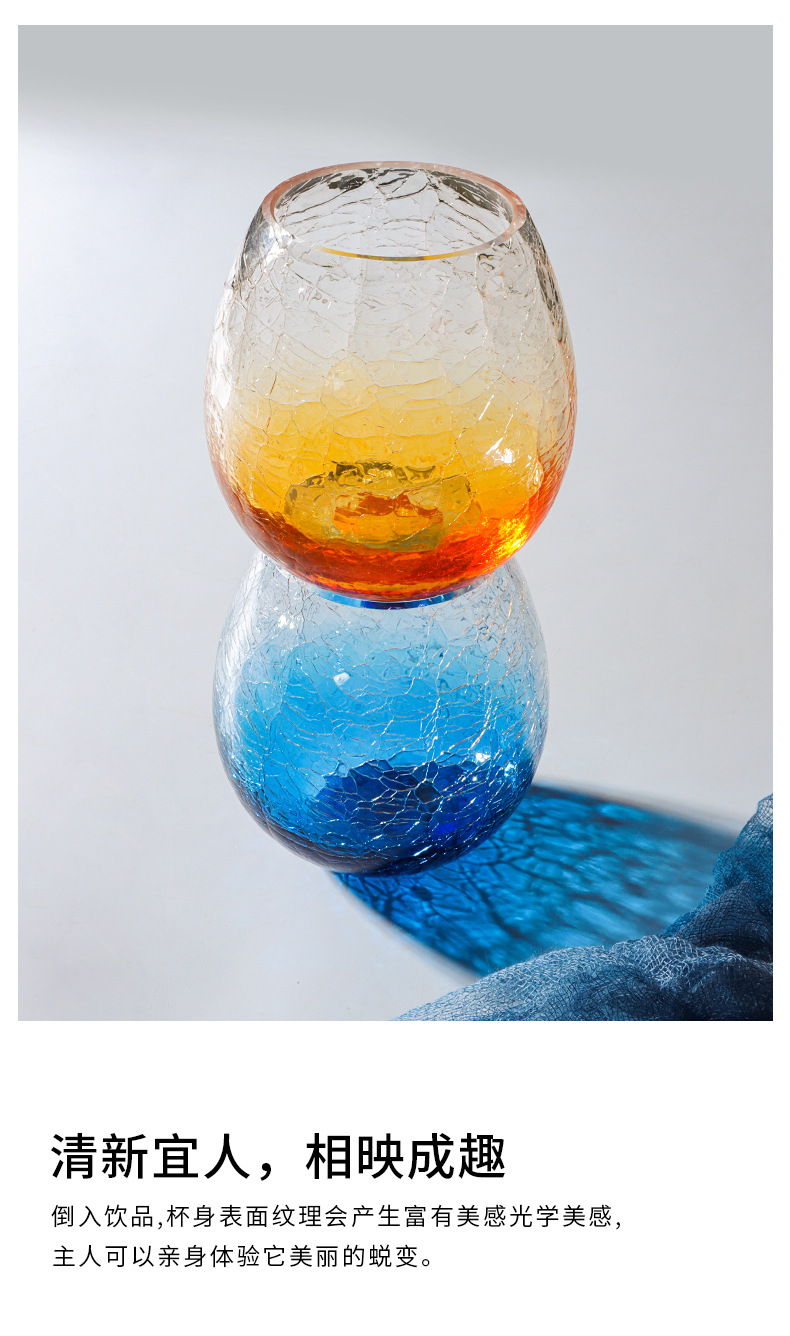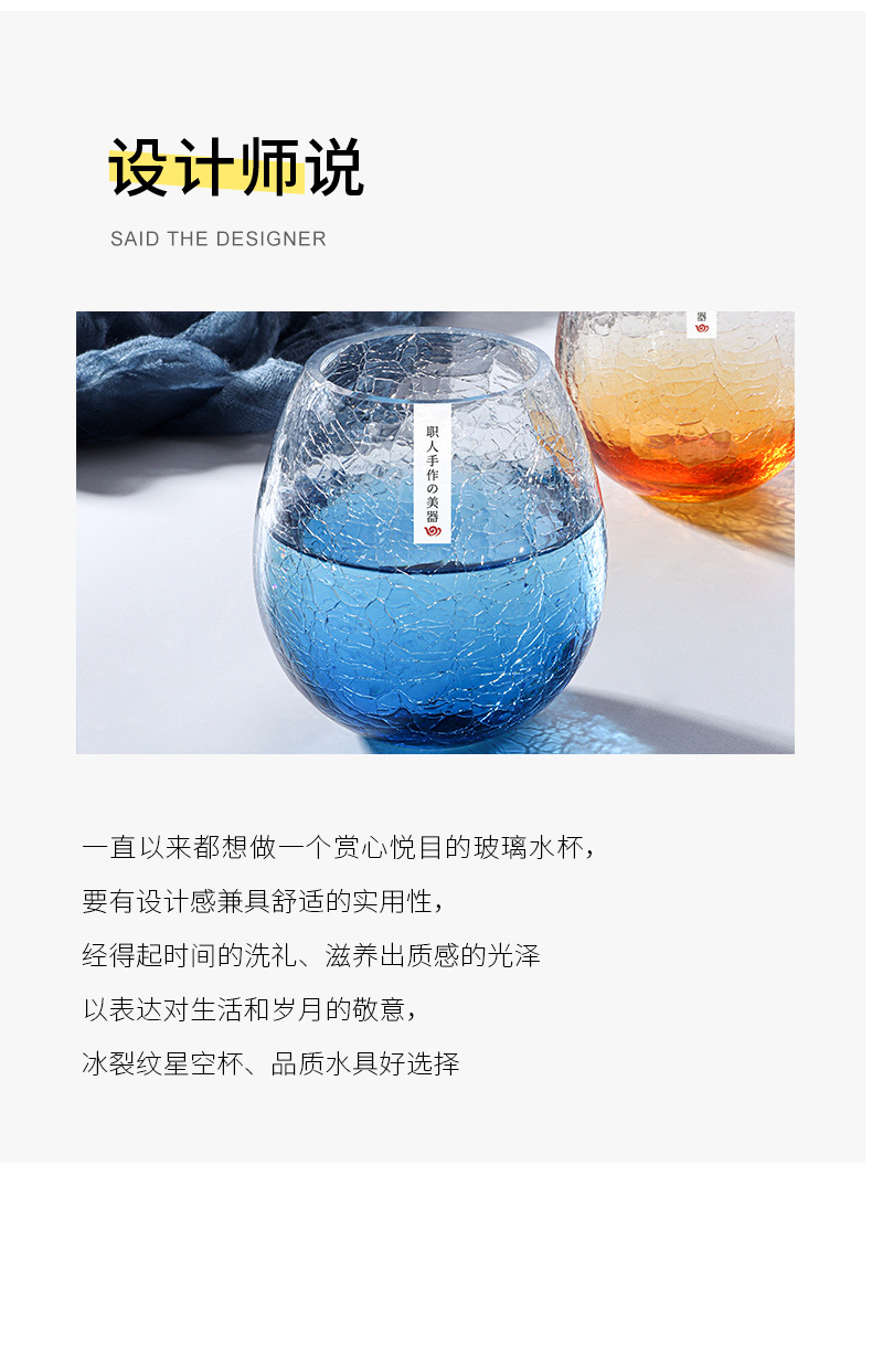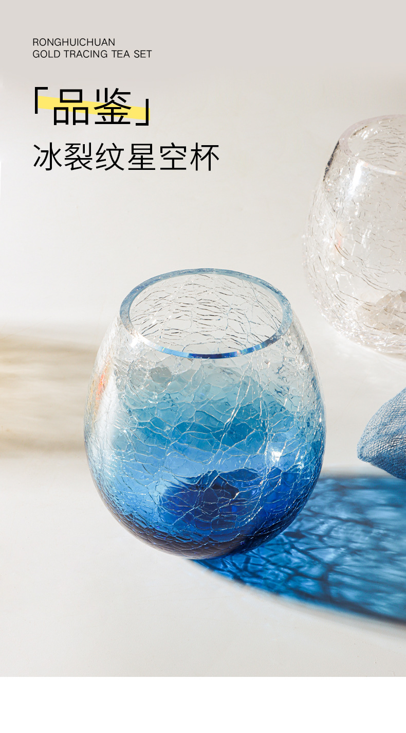 藍色冰裂星空玻璃杯水杯女可愛ins風杯子早餐杯啤酒杯牛奶咖啡杯