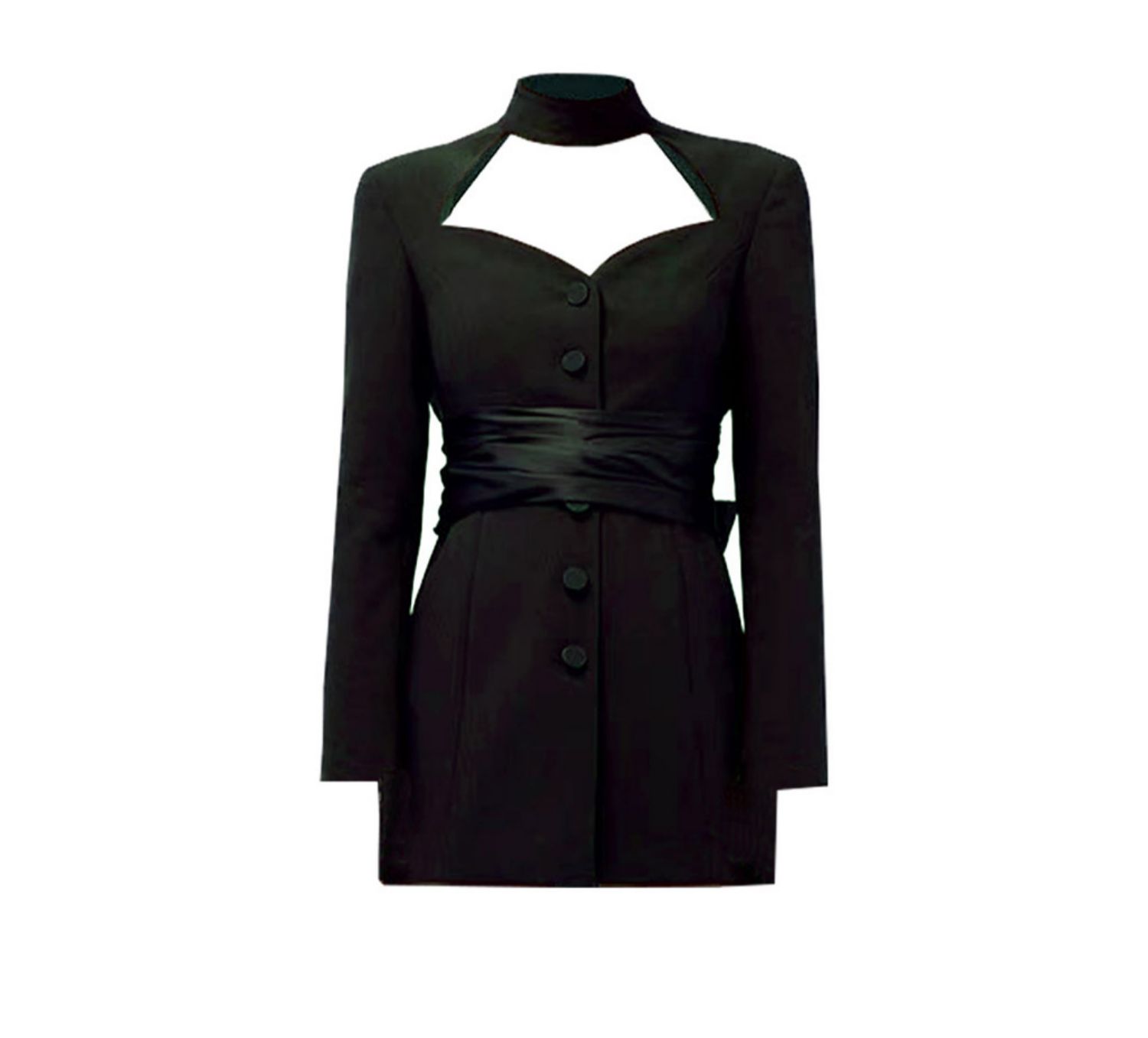 郭九九呢棉質黑色圓領長袖修身顯瘦名媛打底連衣裙女秋設計感長裙