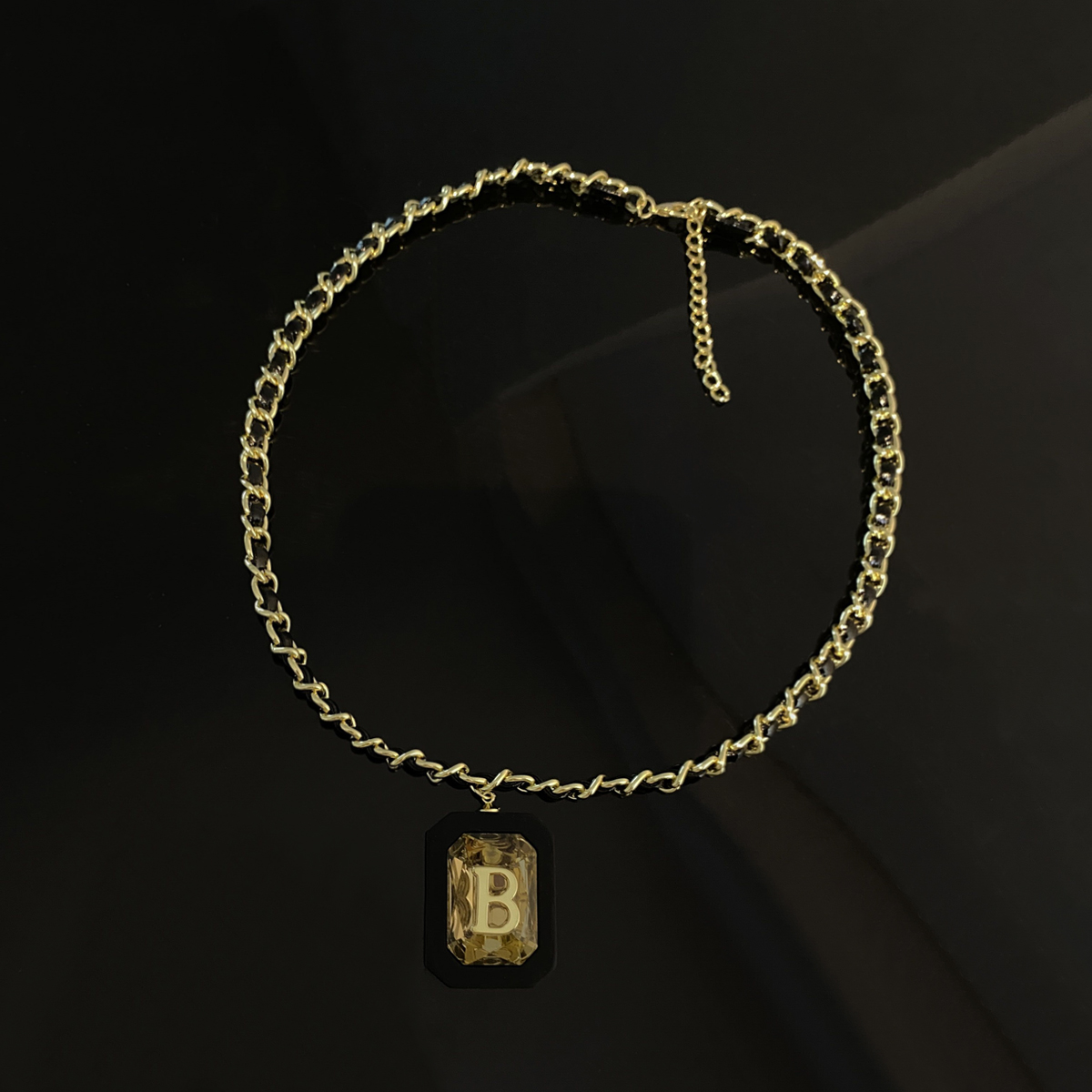 時髦金屬皮質編織鏈條長款項鏈復古時尚水晶B字母吊墜毛衣鏈頸鏈