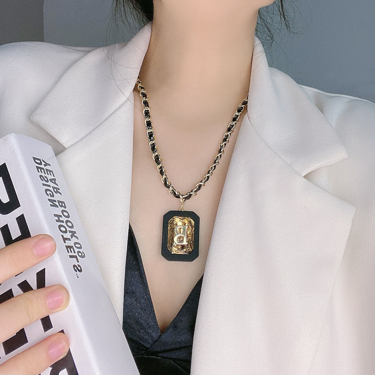 歐美大牌感雙層方牌2022年潮毛衣鏈