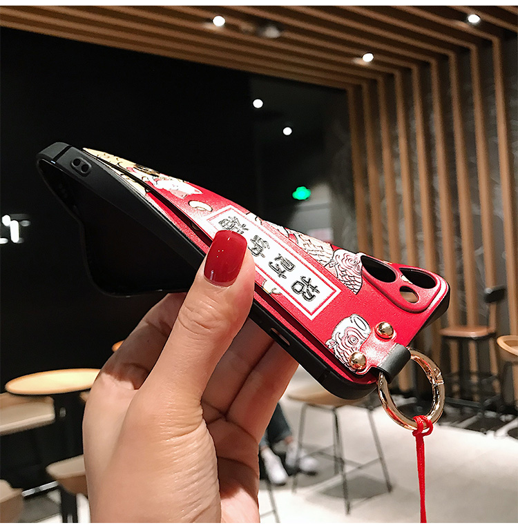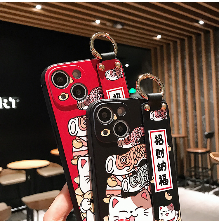 招財納福浮雕招財貓適用iPhone15Pro手機殼腕帶支架14蘋果13ProMax軟12全包11直邊8plus流蘇6plus女7好運XMax