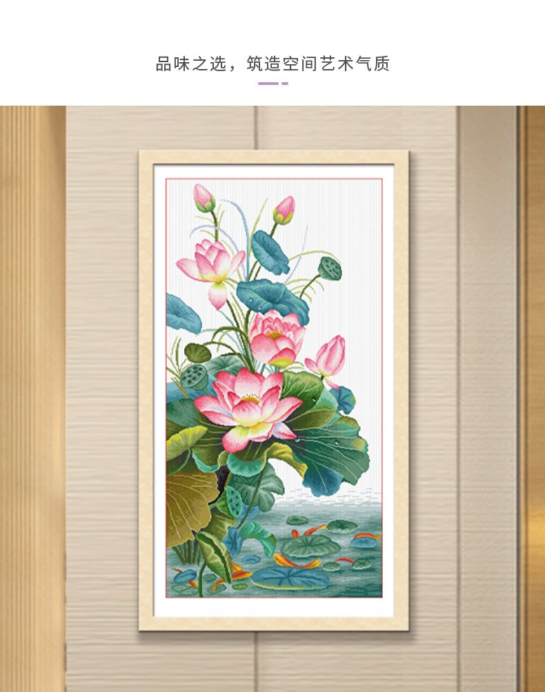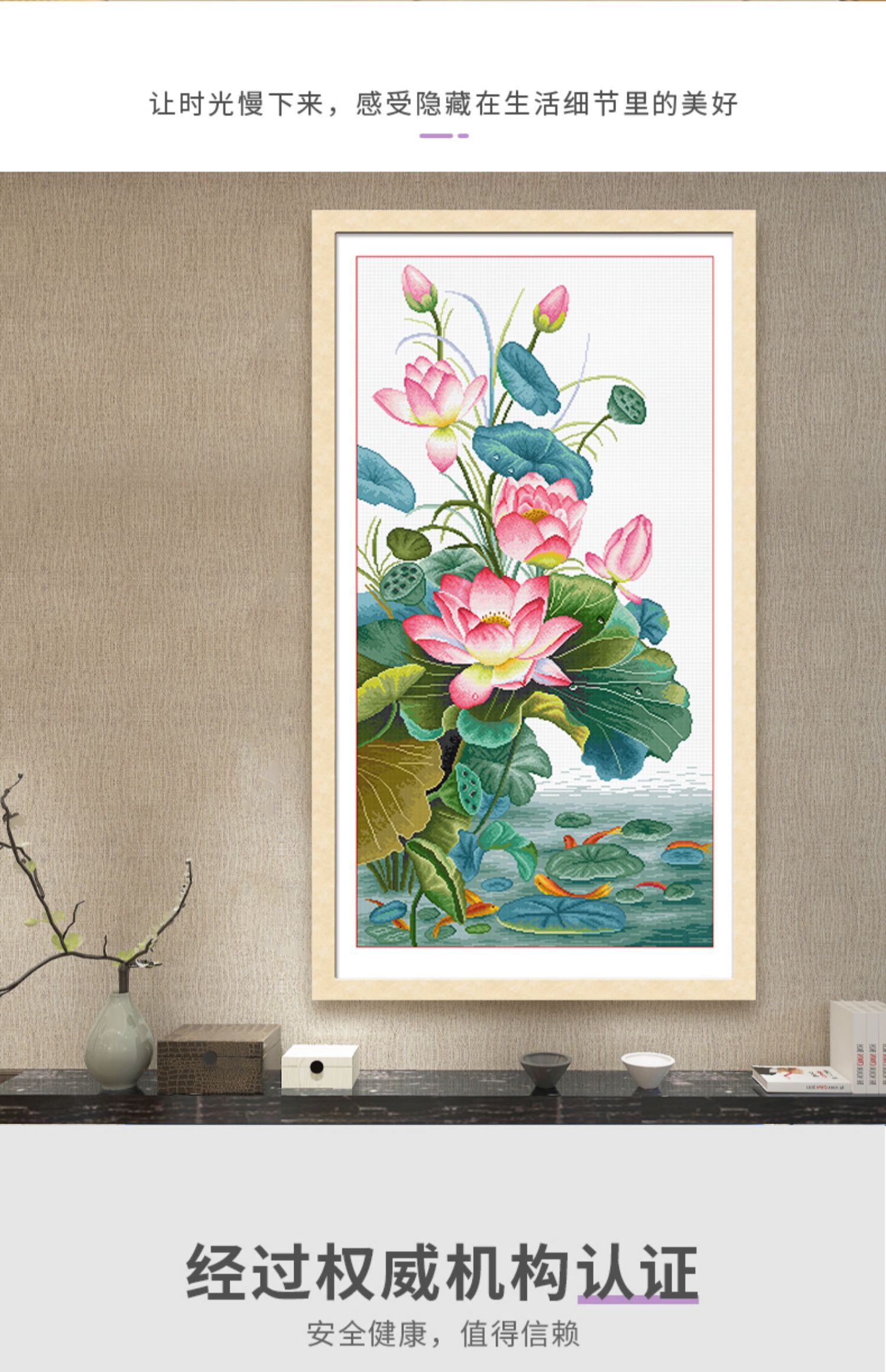 KS十字繡2023新款客廳現代簡約大氣中國風掛畫自己繡線繡荷顏愉悅