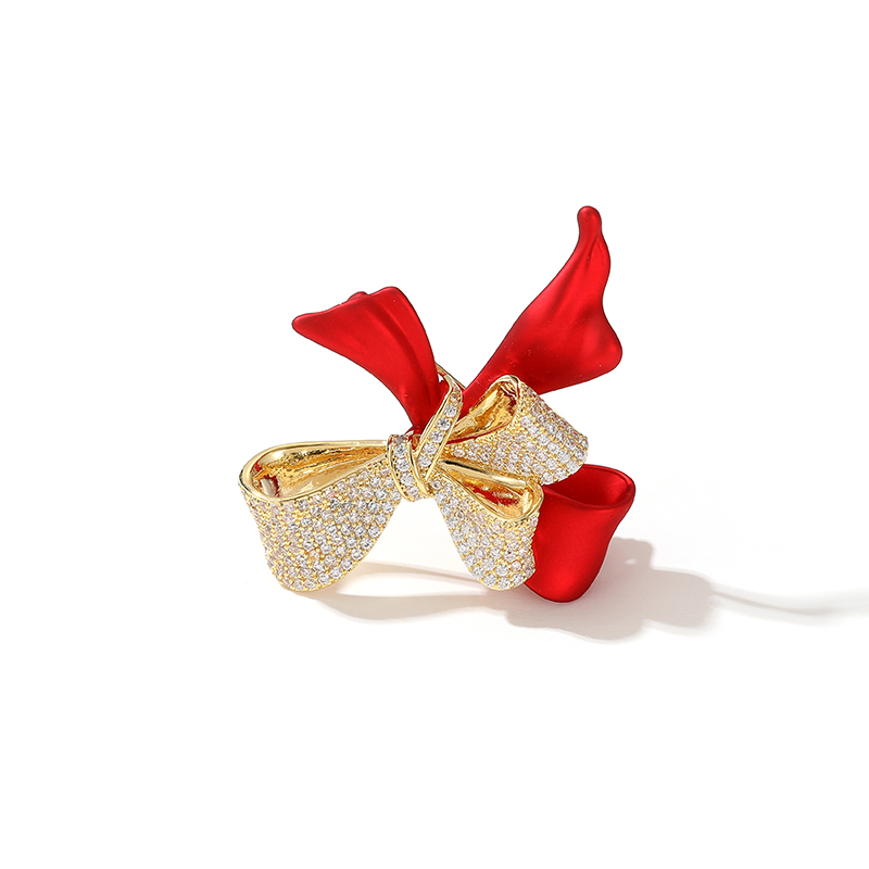 新款潮水晶紅色蝴蝶結優雅胸針奢華高檔氣質西裝胸花精致固定別針