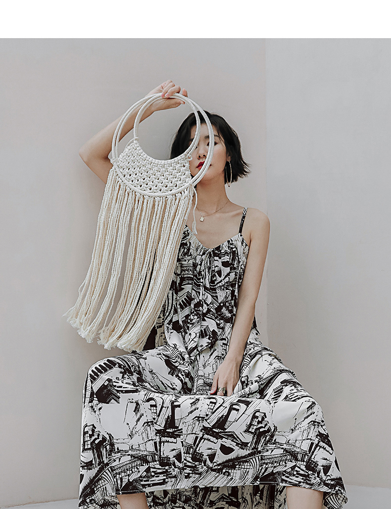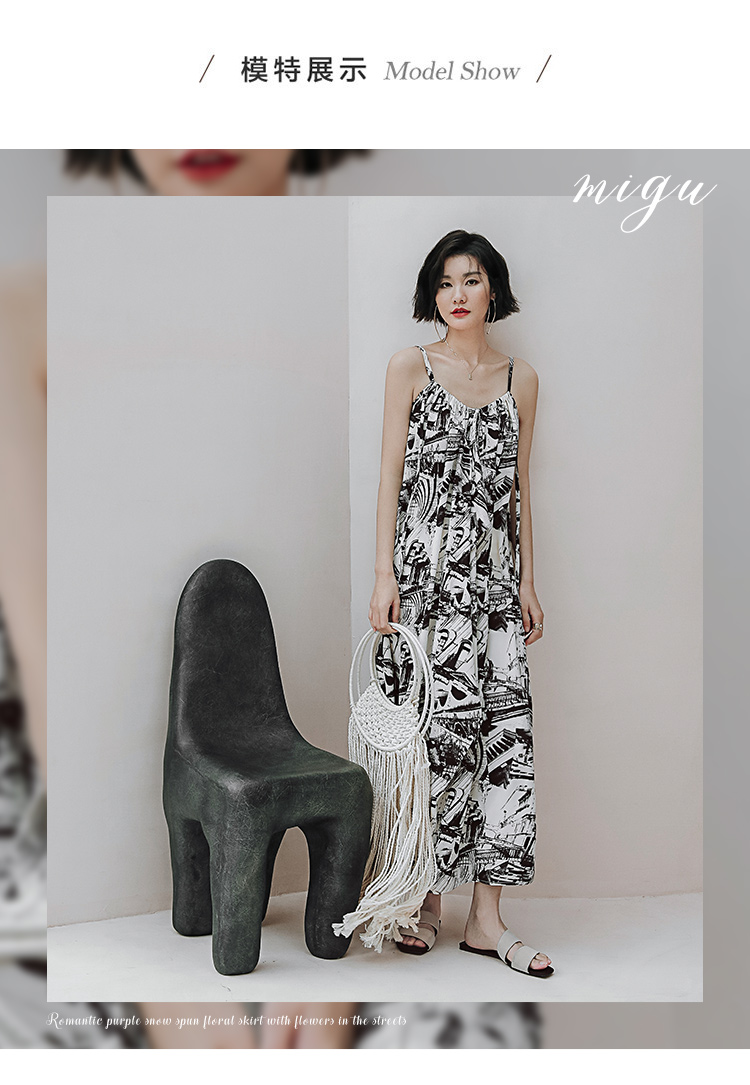 彌古波西米亞雪紡連衣裙法式水墨畫吊帶裙女夏海邊度假長裙沙灘裙