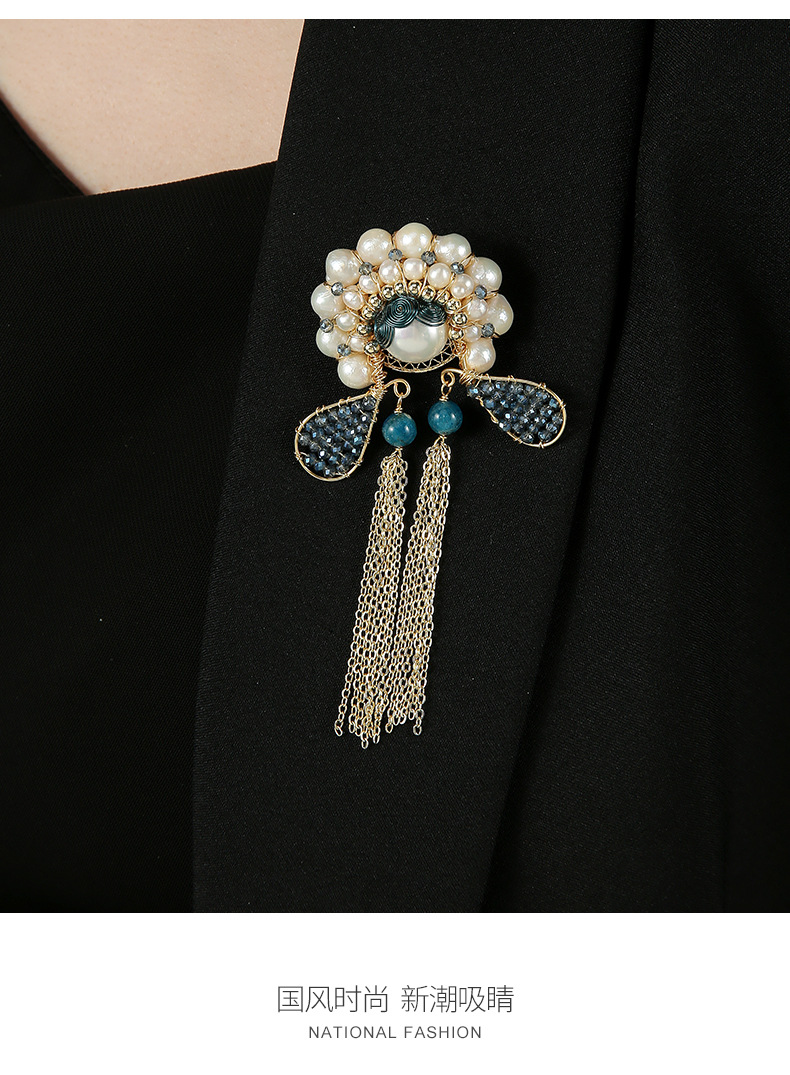 國潮設計感氣質刀馬旦臉譜手工貝珠胸針女別針小眾個性胸花配飾品