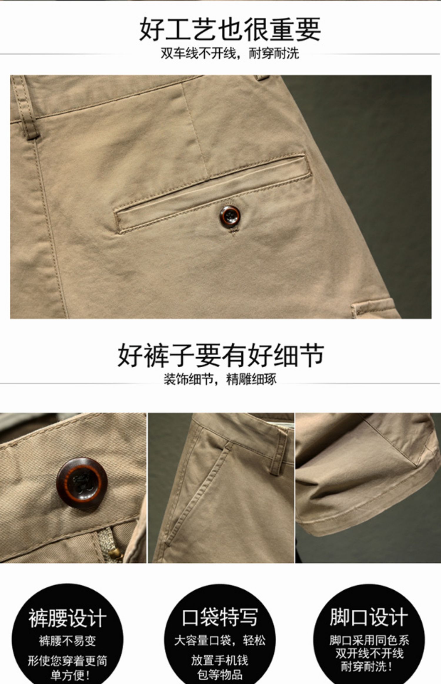 夏季休閑男士寬松潮流純棉卡其短褲