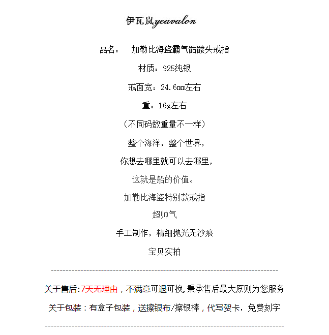 07¥ CZ3457 OqgtdB1rC06¥ https://m.tb.cn/h.5VDQ7pE 約翰尼德普加勒比海盜霸氣骷髏頭戒指925純銀朋克個性嘻哈時尚潮 --------------------- 約翰尼德普加勒比海盜霸氣骷髏頭戒指925純銀朋克個性嘻哈時尚潮 --------------------- 【原售價】288元 【優惠券】15元 【券后價】273元。