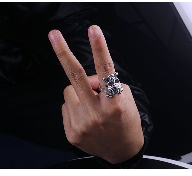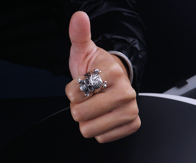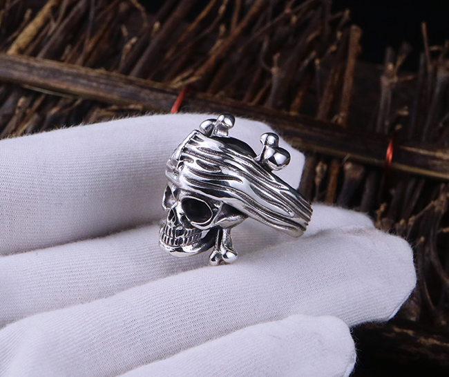 約翰尼德普加勒比海盜霸氣骷髏頭戒指925純銀朋克個性嘻哈時尚潮
