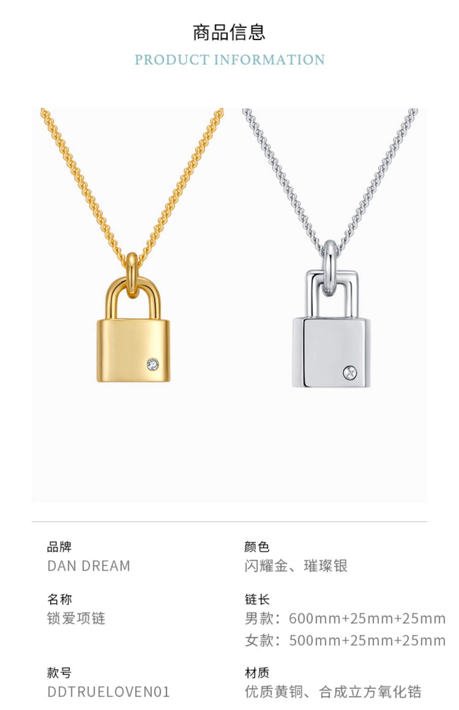 DanDream明星同款鎖愛項鏈情侶款輕奢小眾男女鎖骨鏈高級感禮物