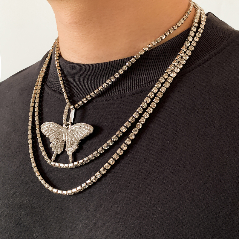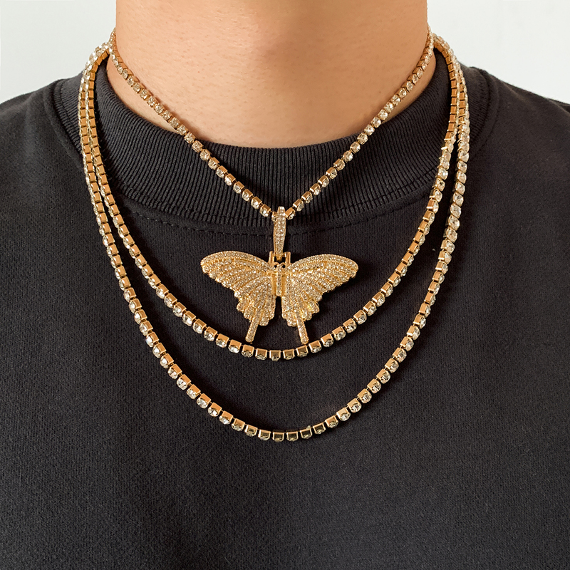 鑲鉆蝴蝶古巴女2022年新款潮項鏈