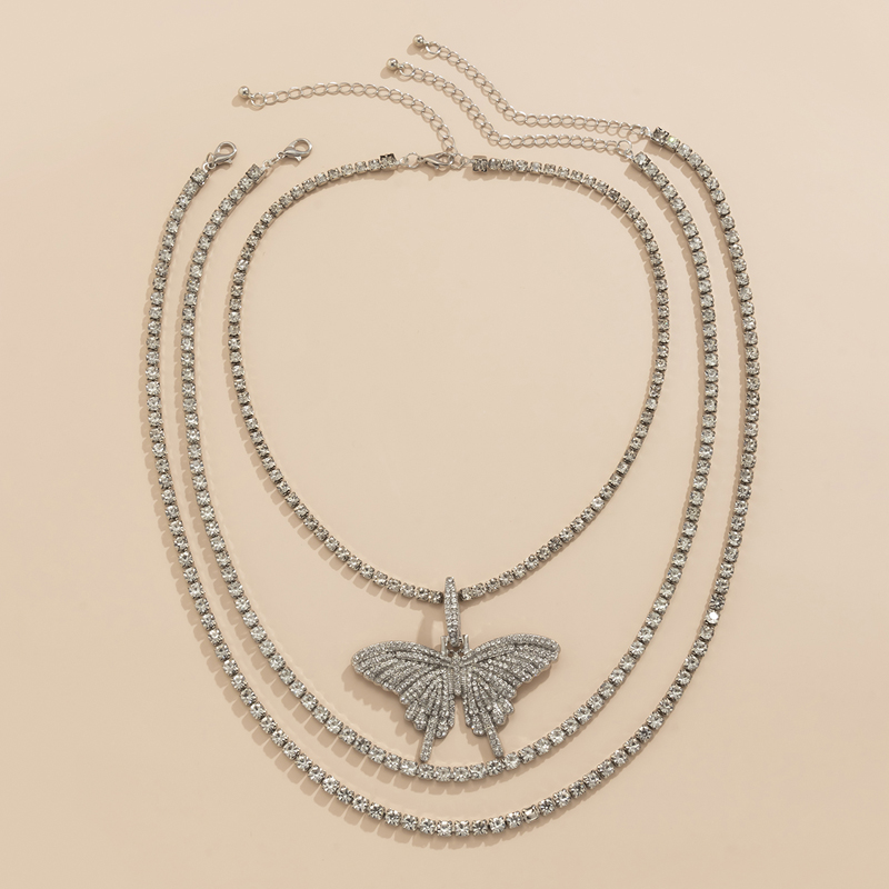 鑲鉆蝴蝶兩件套項鏈套裝歐美鎖骨鏈