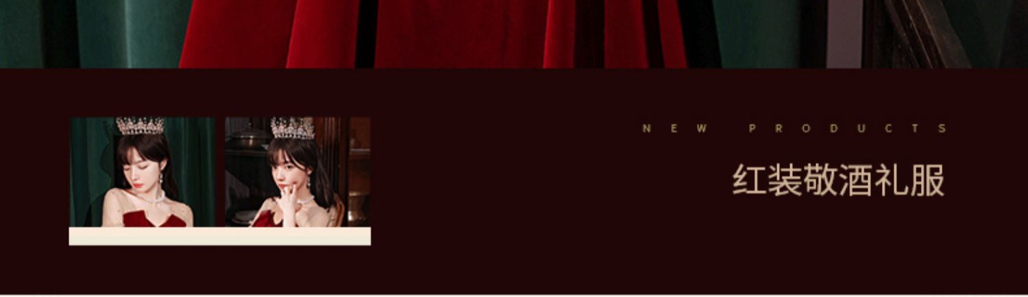夏季酒紅色新娘顯瘦訂婚禮服回門感