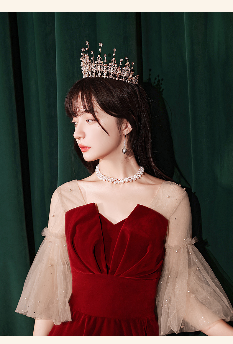 酒紅色夏季新娘結婚2022新款晚禮服